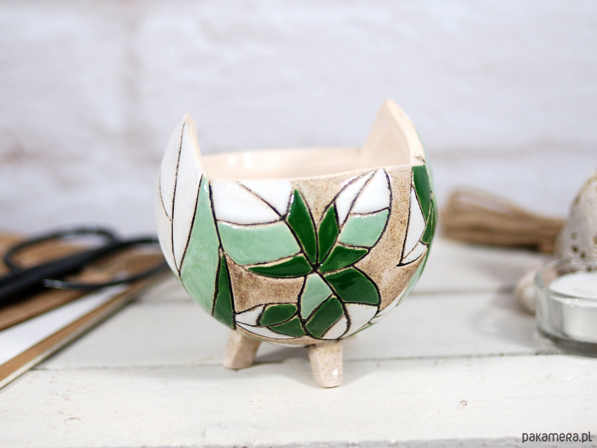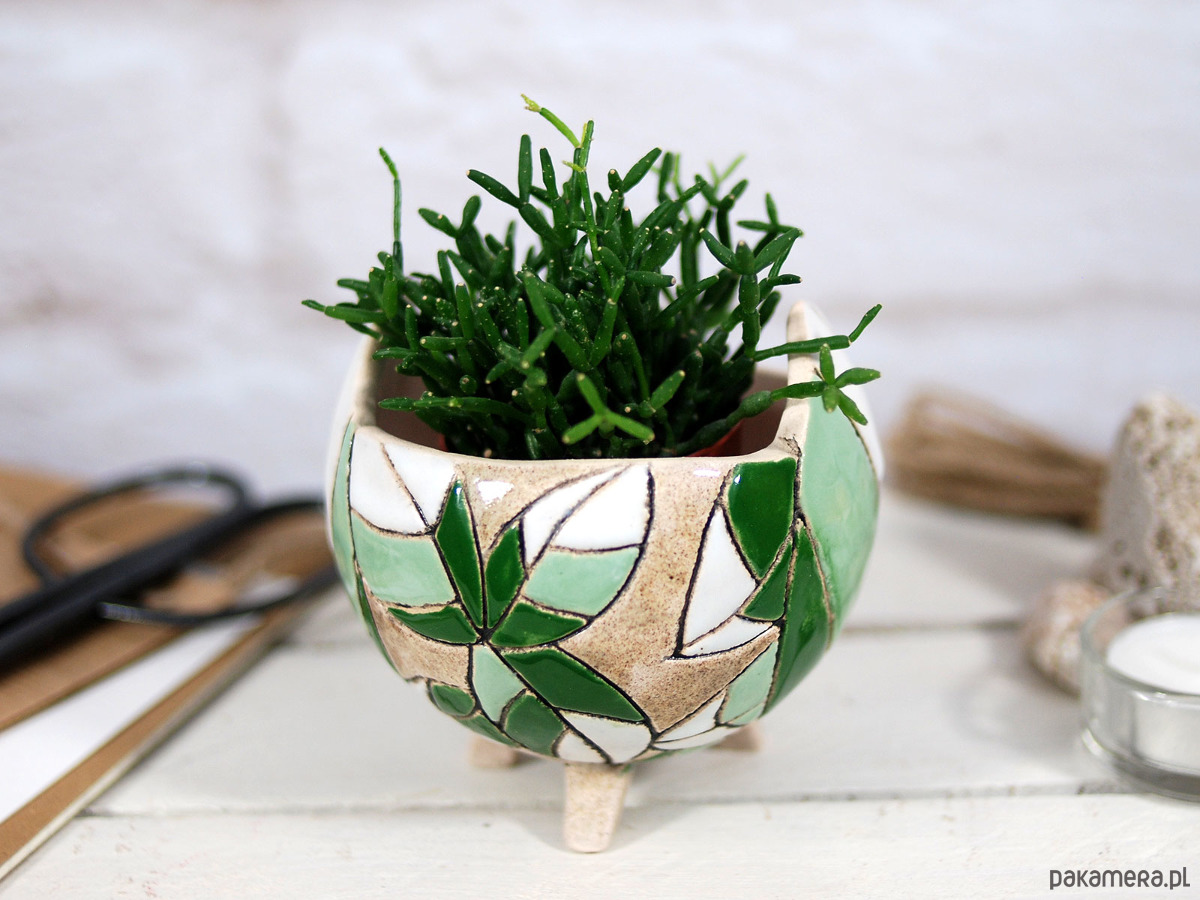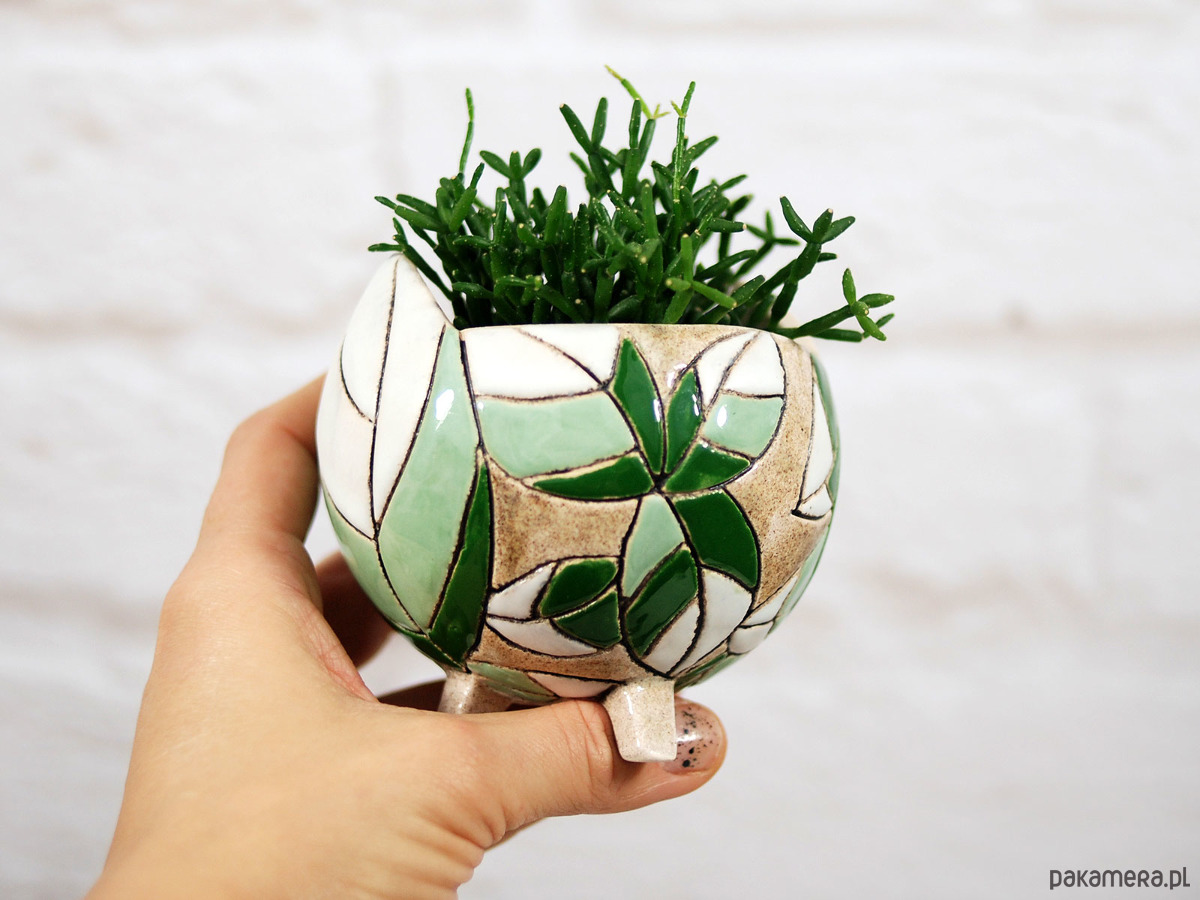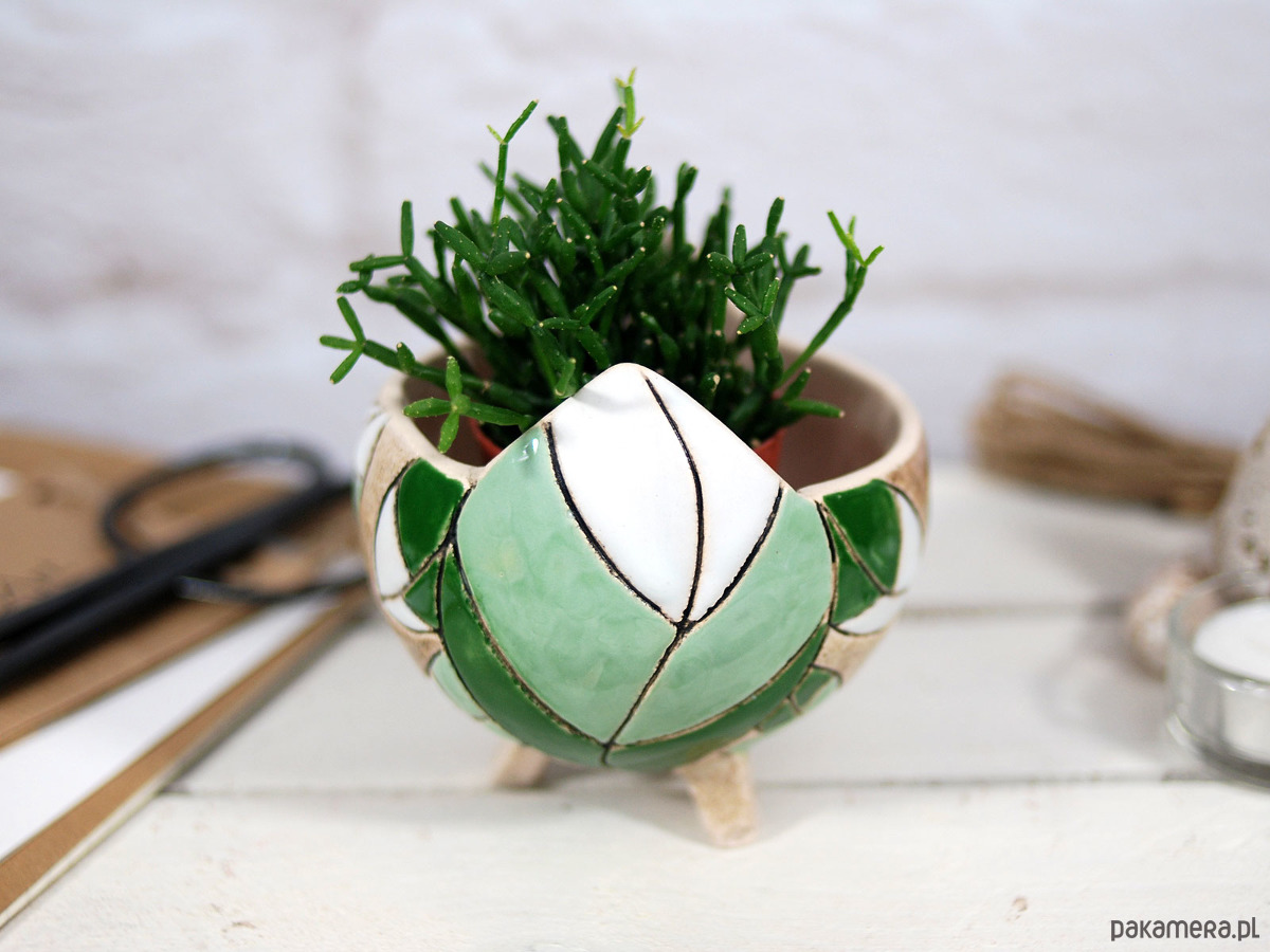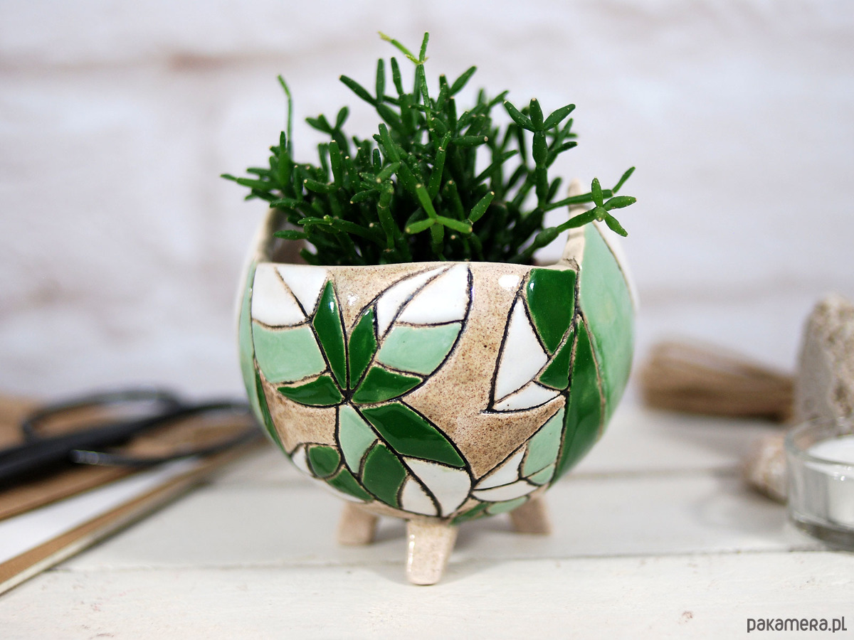 Ręcznie robiona i malowana, stojąca doniczka na sukulenty, kaktusy lub inne rośliny ozdobi każde miejsce w twoim domu, ogrodzie lub balkonie. Ceramiczna doniczka to świetny designerski dodatek do mieszkania, który podkreśli styl i osobowość wnętrza. To również piękny i funkcjonalny prezent na urodziny, wizytę u znajomych, parapetówkę i wiele innych okazji; nie tylko dla domowych ogrodników :).