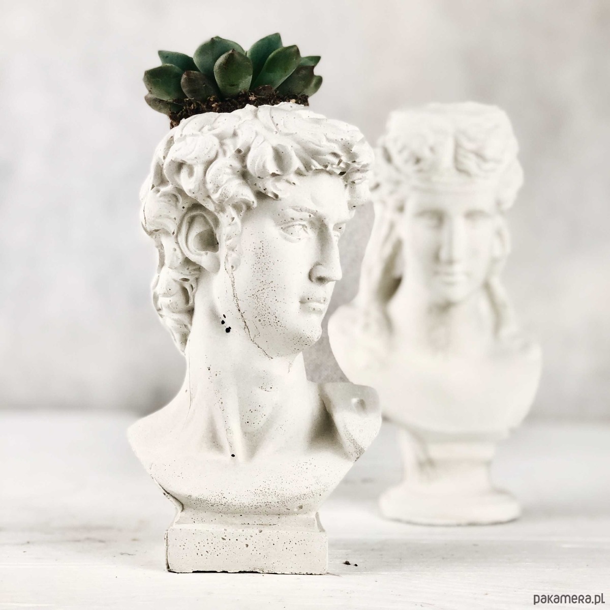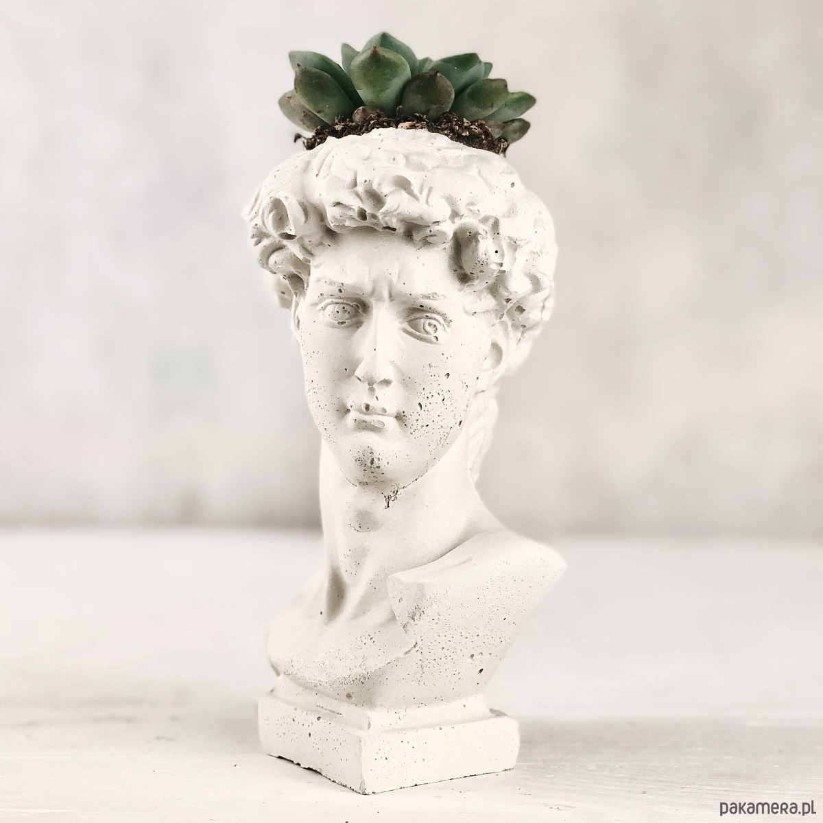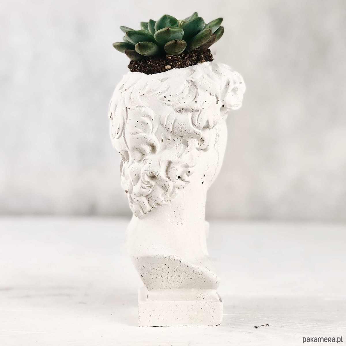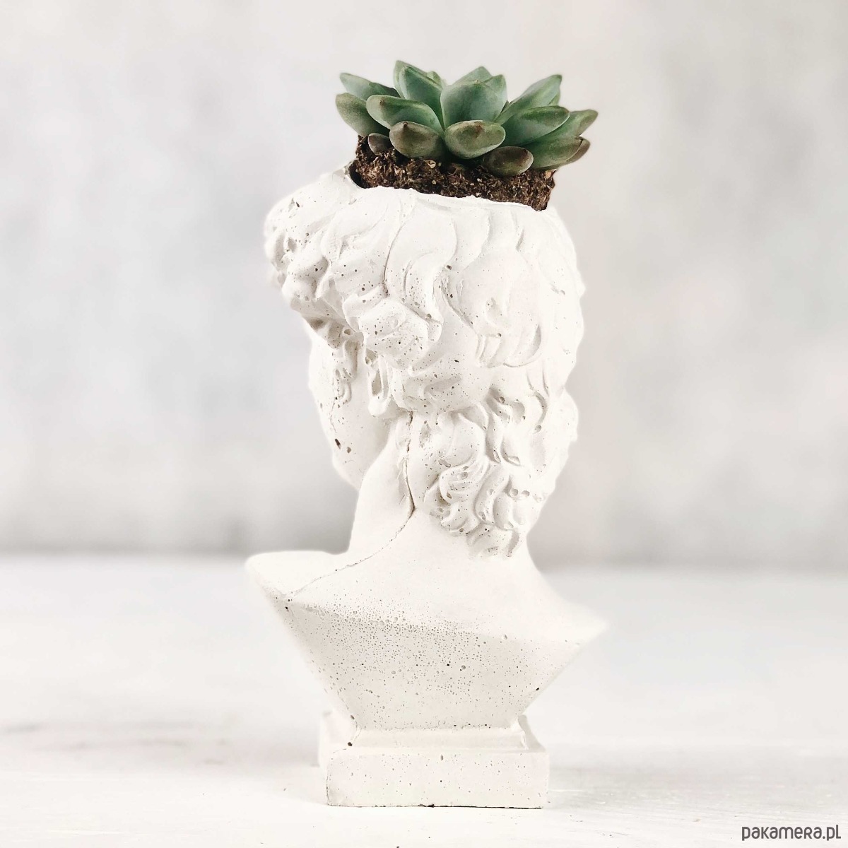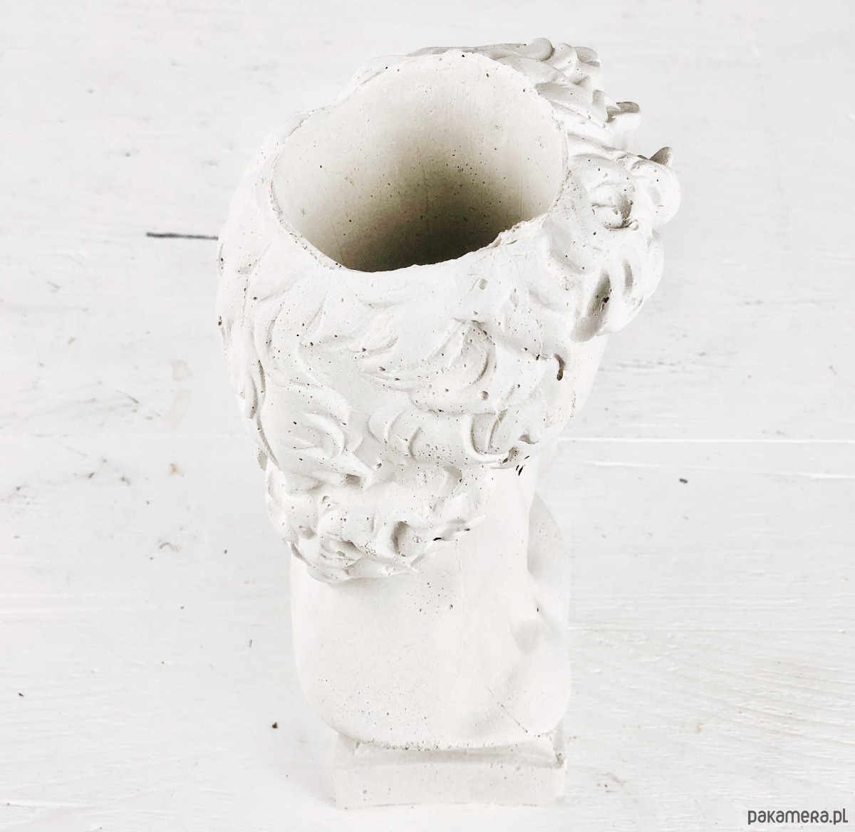• Betonowe popiersie z otworem w głowie, które może pełnić różnie funkcje: doniczka, wazonik, organizer lub ozdobna figurka.