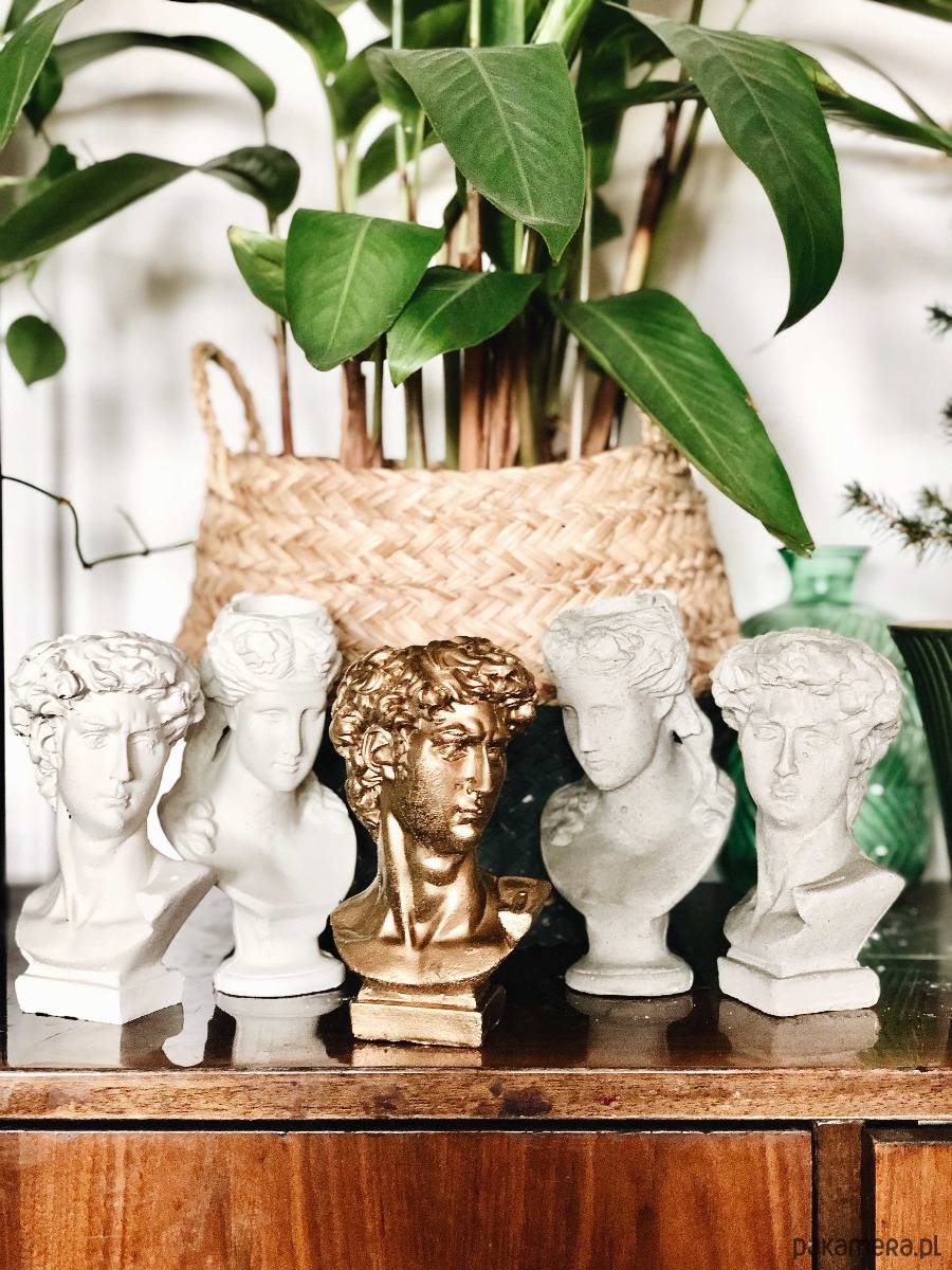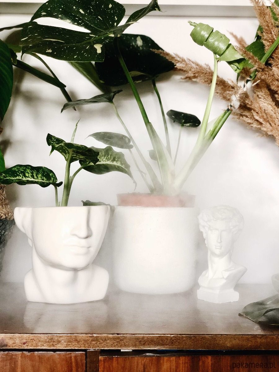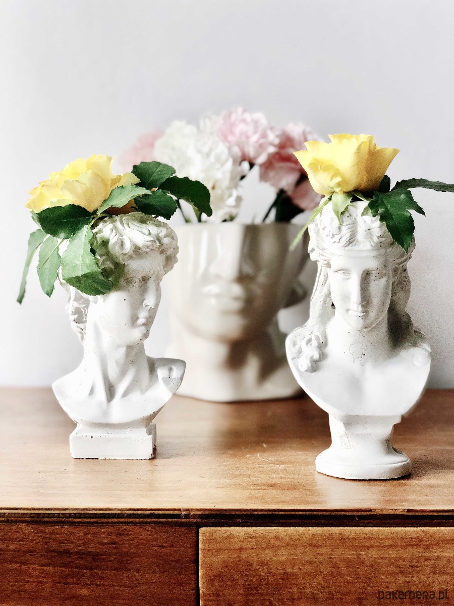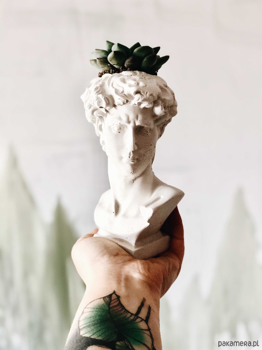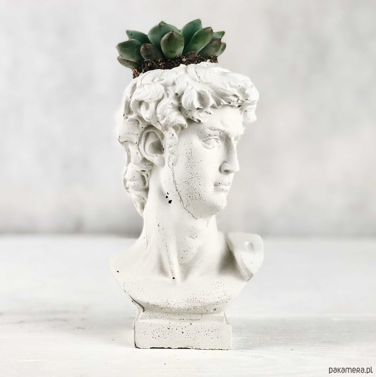 • Betonowe popiersie z otworem w głowie, które może pełnić różnie funkcje: doniczka, wazonik, organizer lub ozdobna figurka.