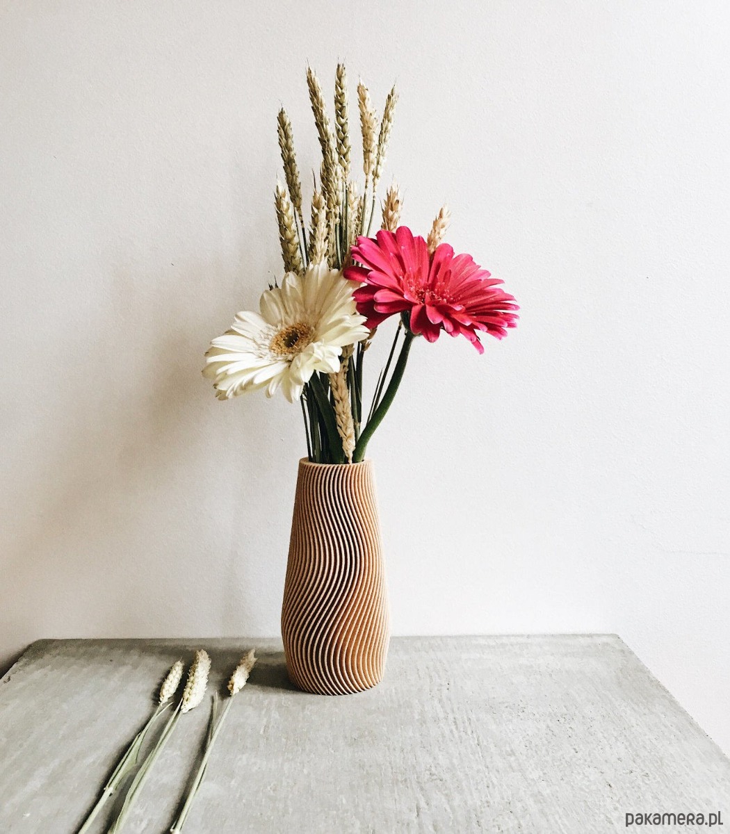 nasze wazony są przyjazne środowisku? Zostały wykonane z recyklingowanego drewna oraz biotworzywa z kukurydzy. Taka mieszanka zapewnia naszym produktom piękny wygląd, ogromną trwałość i świeży, drewniany zapach. Każdy produkt jest w 100% biodegradowalny. Na każdą formę zużywana jest jak najmniejsza ilość materiałów, aby ograniczyć wpływ produkcji na środowisko. To przekłada się na niską wagę wazonów.