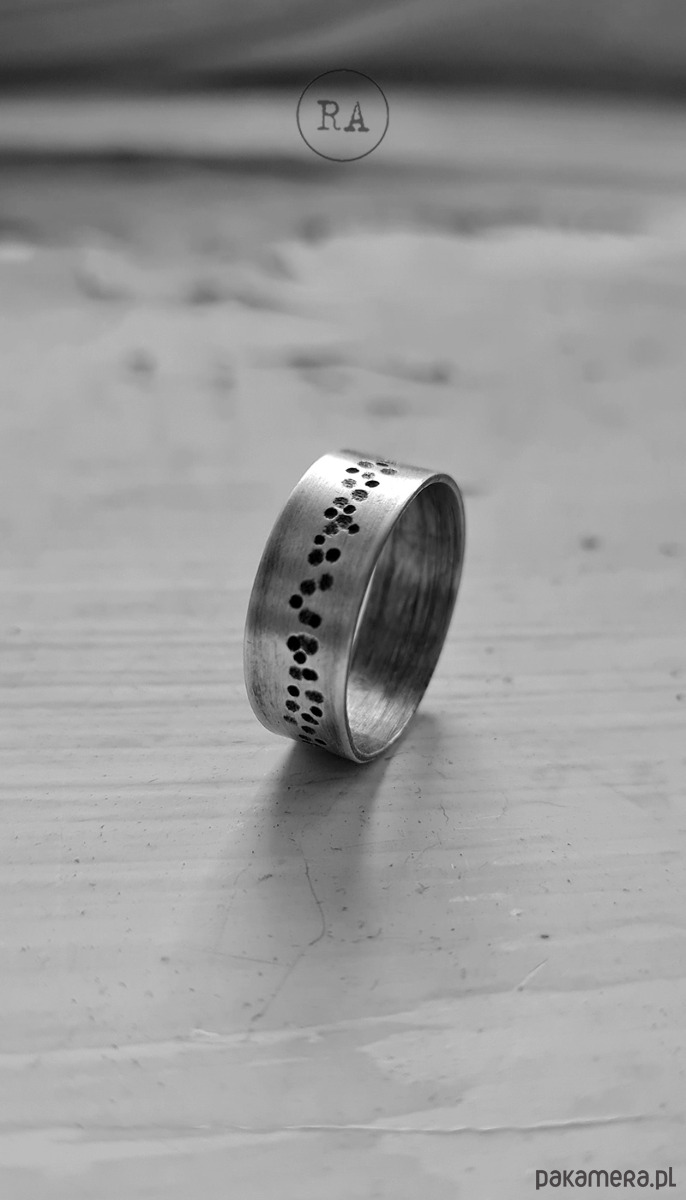 Obrączka wykonana ze srebra, o szerokości ok. 6 mm. Po zakupie prosimy o podanie rozmiaru, wykonamy każdy rozmiar z tabeli.