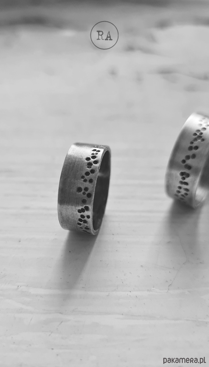 DOTS-2 pierścionek ze srebra oksydowana obrączka