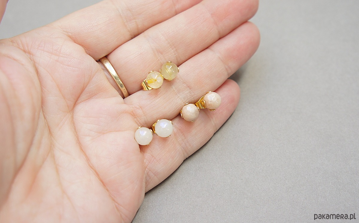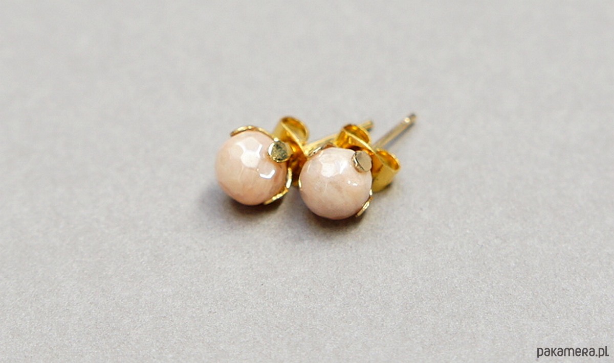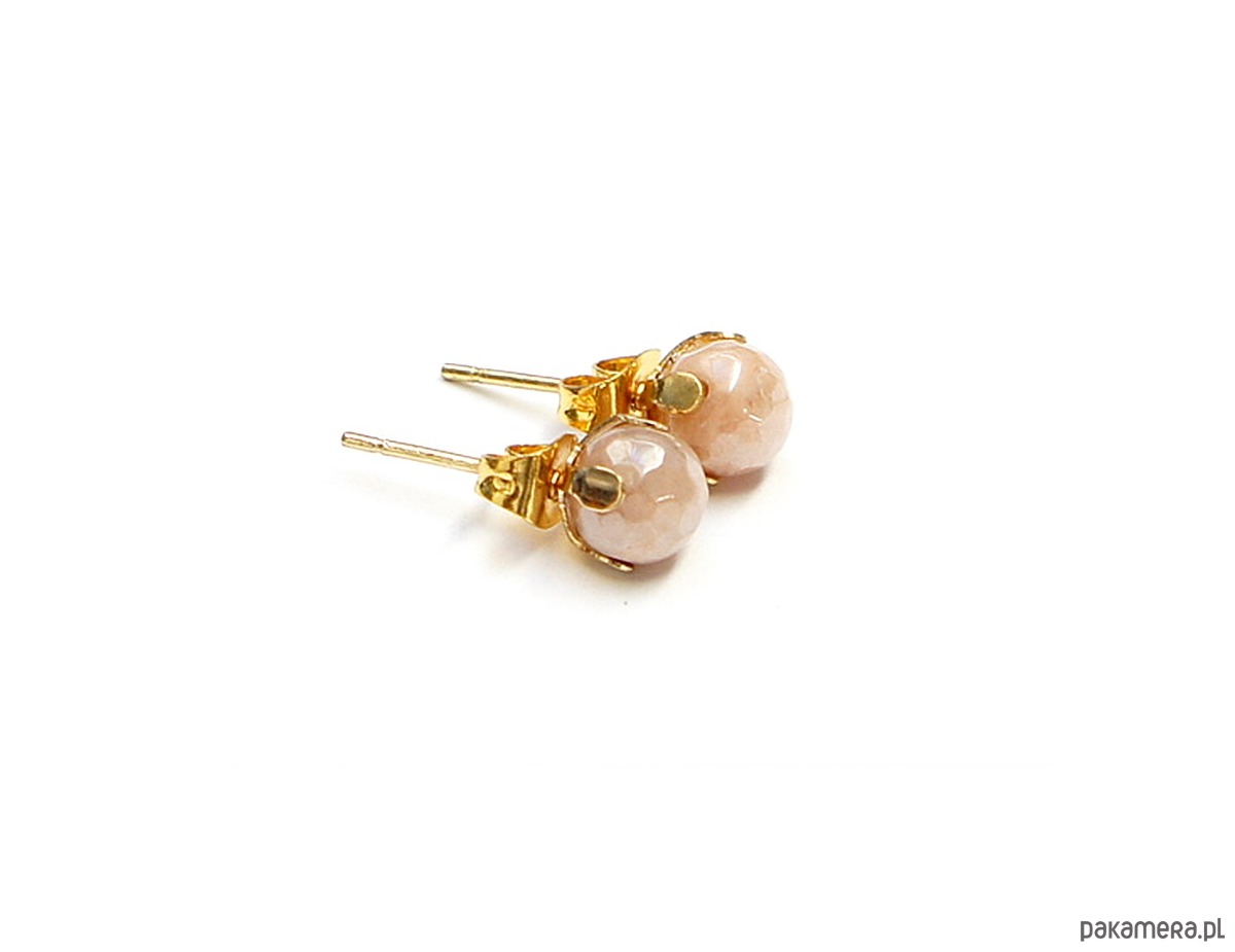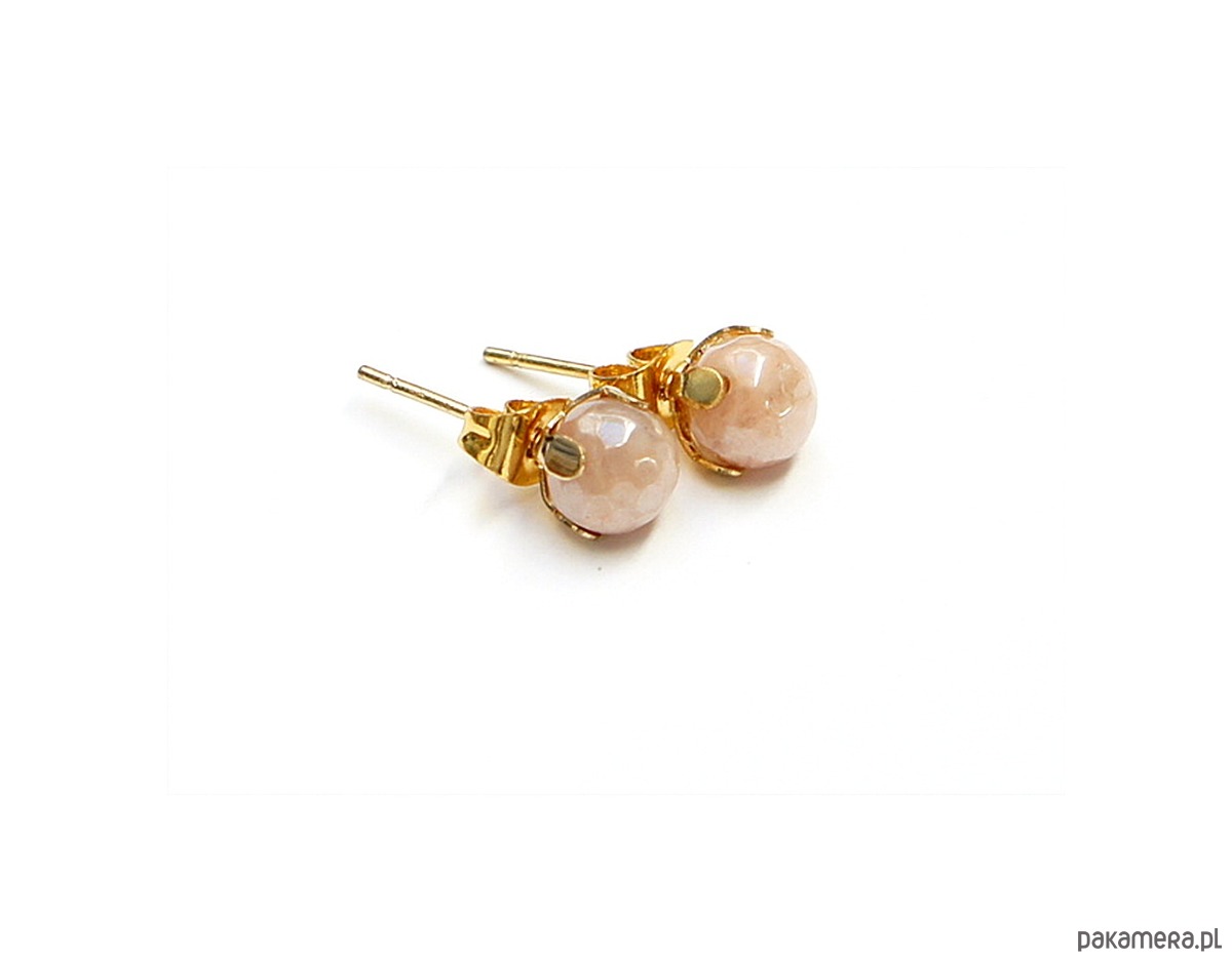 Delikatne, drobne kolczyki wykonane z naturalnych minerałów - kamień słoneczny fasetowane mystic [6mm] oraz z pozłacanej stali szlachetnej. Zapięcie - sztyfty; Biżuteria ozdobnie zapakowana. Kamienie mogą nieznacznie różnić się od tych zaprezentowanych na zdjęciu, ponieważ każdy kamień naturalny jest inny.