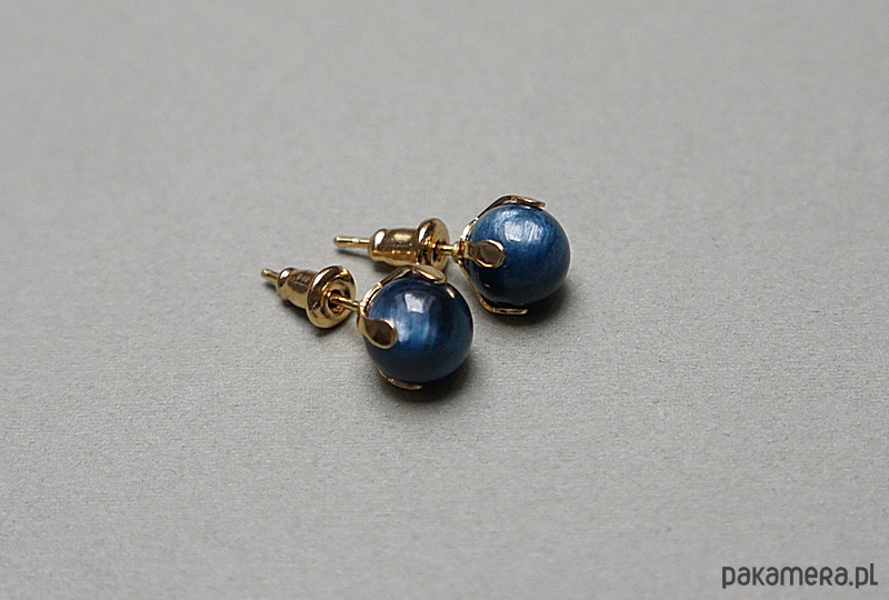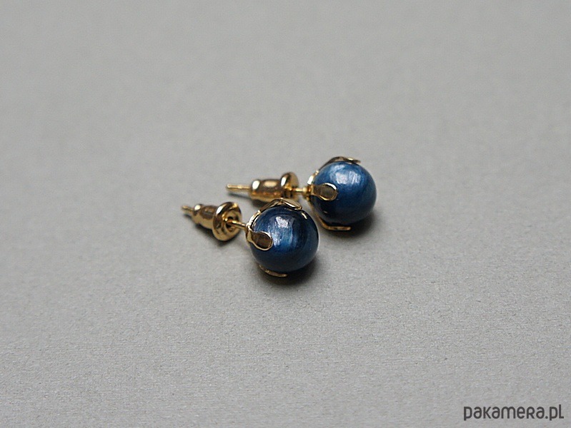 Delikatne kolczyki wykonane z naturalnych minerałów - kyanit [8mm] oraz ze stali szlachetnej. Zapięcie - sztyfty; Biżuteria ozdobnie zapakowana.