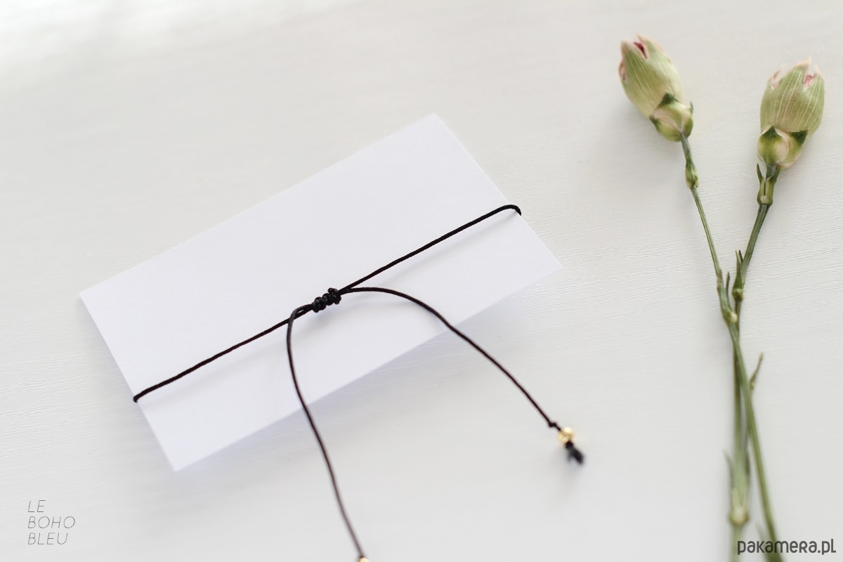 • Kolory sznureczka do wyboru (na zdj. przedstawiono bransoletki: ze sznureczkiem w kolorze brudnego różu i w kolorze białym)