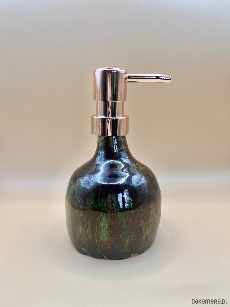 Ręcznie robiony ceramiczny dozownik na mydło w płynie – zielony z połyskiem, unikatowy design