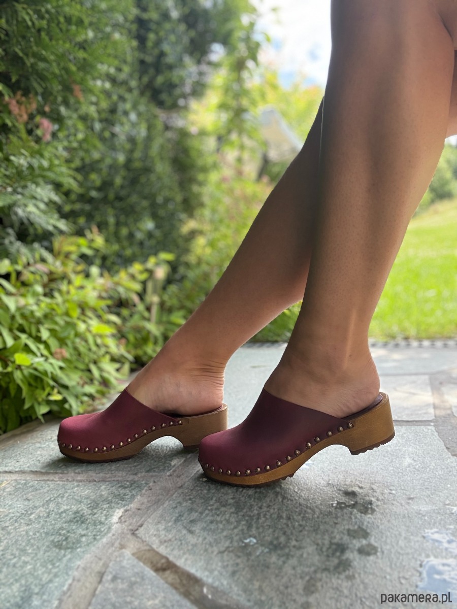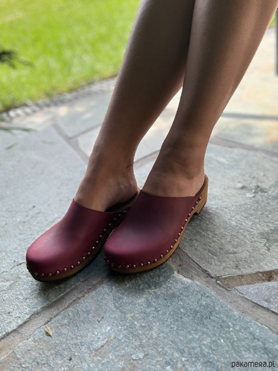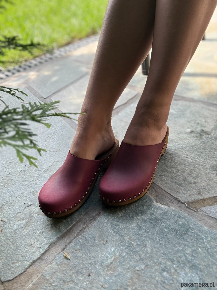 Drewniaki klasyczne z ćwiekami ze skóry i drewna