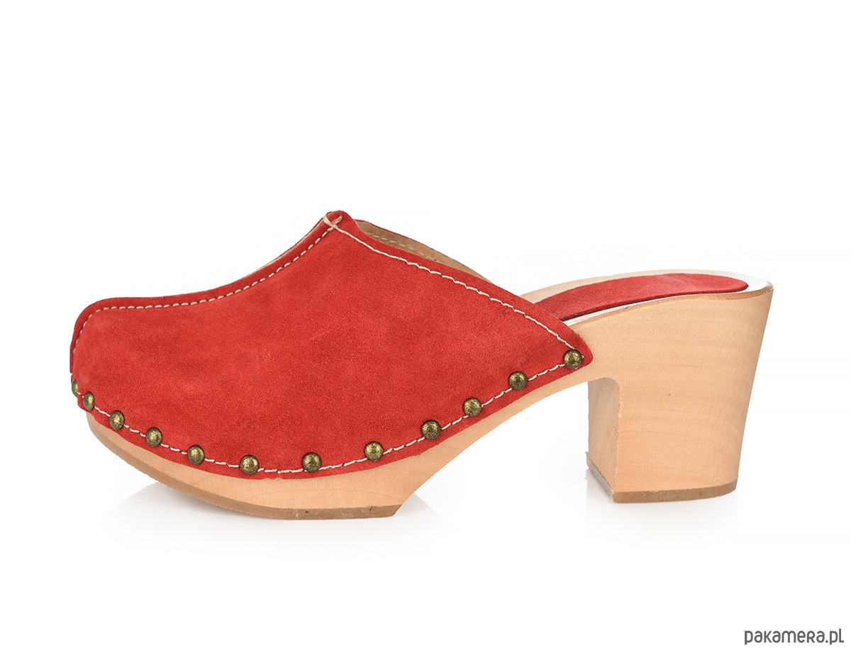 Drewniaki na obcasie ze skóry naturalnej i drewna