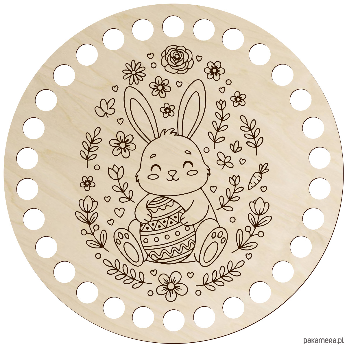 Drewniana baza do szydełkowania z wielkanocnym grawerem to wyjątkowy dodatek do rękodzieła, który pozwoli stworzyć niepowtarzalne dekoracje świąteczne. Wykonana z naturalnej sklejki brzozowej zachwyca estetyką, precyzją wykonania i świątecznym charakterem.