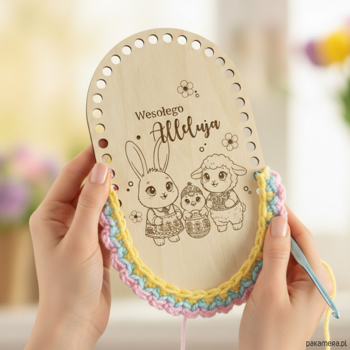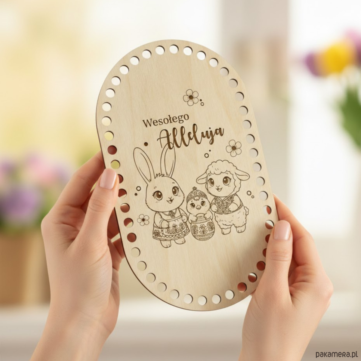 Drewniana baza wielkanocna do szydełkowania w kształcie owalu to idealna podstawa do tworzenia drobnych, ręcznie robionych dekoracji świątecznych. Naturalne drewno i precyzyjne wycięcia sprawiają, że praca z nią jest łatwa i przyjemna.
