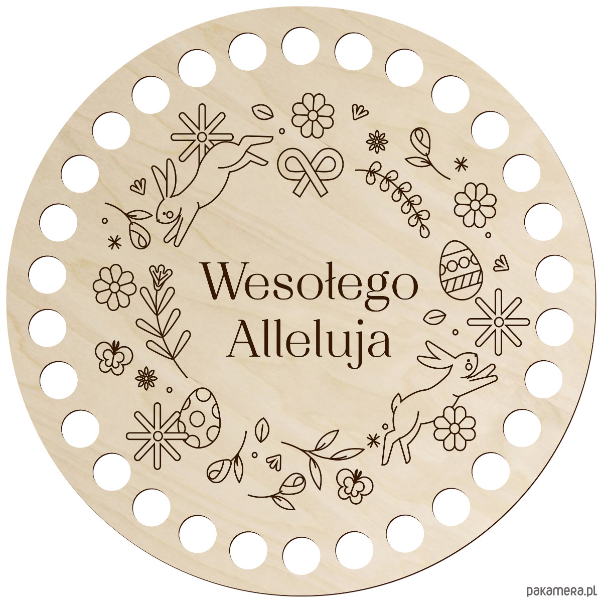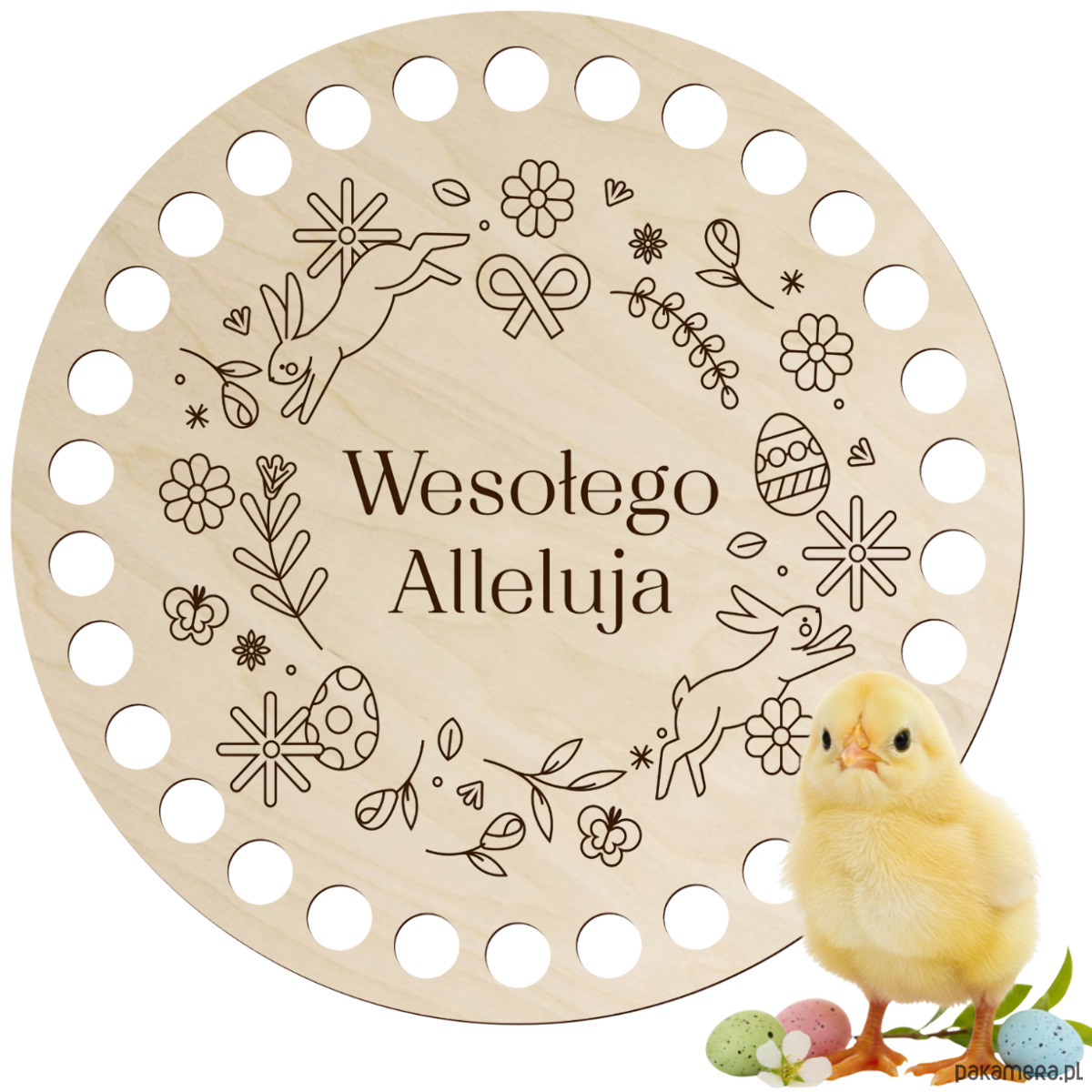Drewniana baza do szydełkowania z wielkanocnym grawerem to wyjątkowy dodatek do rękodzieła, który pozwoli stworzyć niepowtarzalne dekoracje świąteczne. Wykonana z naturalnej sklejki brzozowej zachwyca estetyką, precyzją wykonania i świątecznym charakterem.