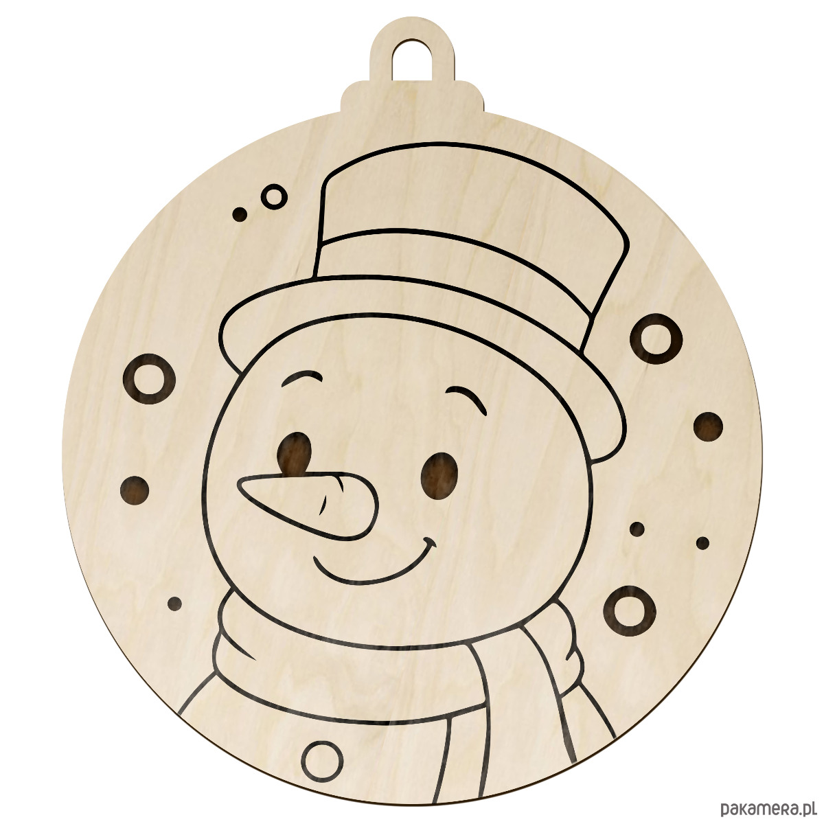 Ta okrągła bombka ze sklejki o średnicy 10 cm z precyzyjnym grawerem to elegancka i uniwersalna dekoracja świąteczna. Dzięki dziurce o średnicy 5 mm bombkę można łatwo zawiesić na choince, girlandzie czy w oknie.