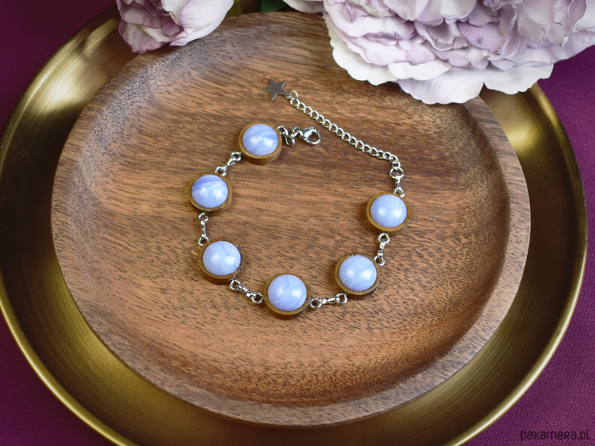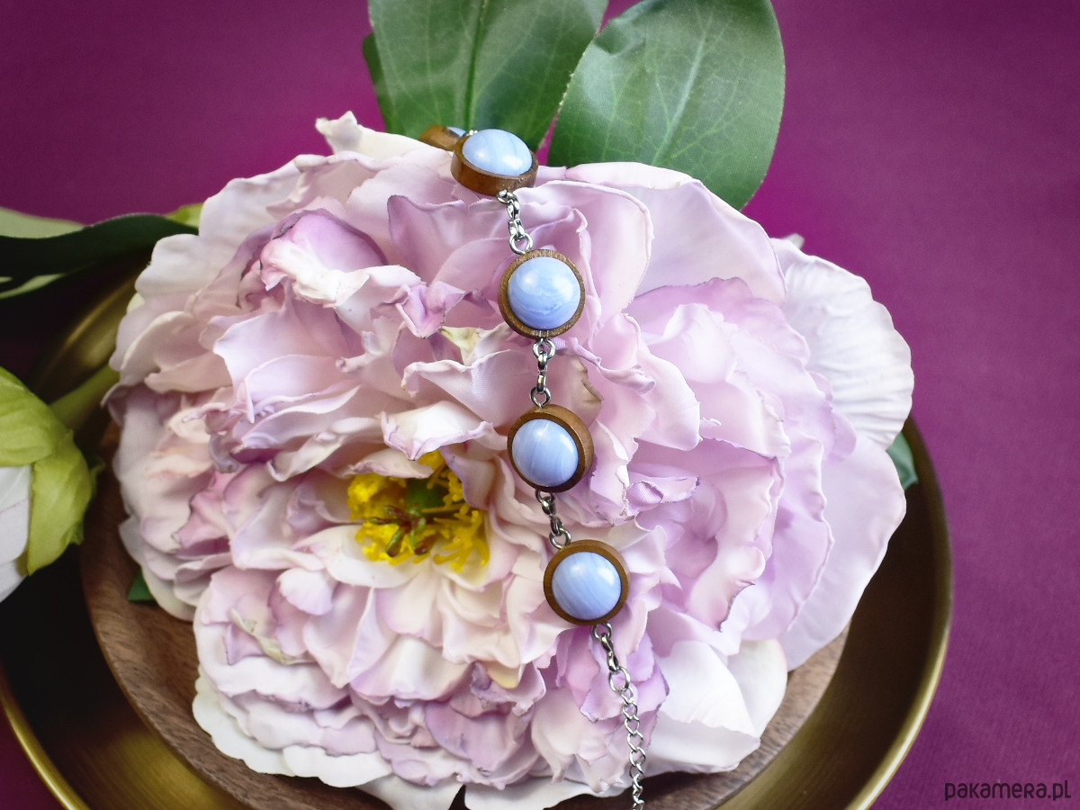 Ręcznie wykonana bransoletka z drewna i kamienia. Bransoletka ma możliwość regulacji.