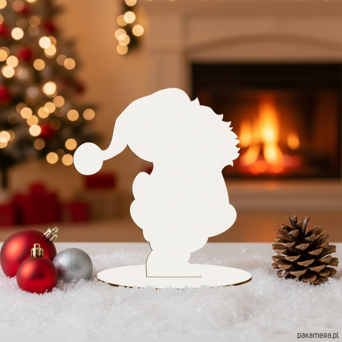 Wyjątkowa figurka świąteczna wykonana z białego, jednostronnie laminowanego MDF to elegancki dodatek, który wprowadzi magiczny, bożonarodzeniowy klimat do każdego wnętrza. Lekka, trwała i estetyczna – idealna do postawienia na półce, stole, komodzie lub wśród innych dekoracji świątecznych.