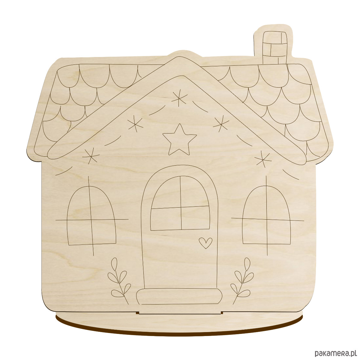 Drewniana Figurka na Podstawce ze Sklejki Domek Chatka dla Dzieci Decoupage