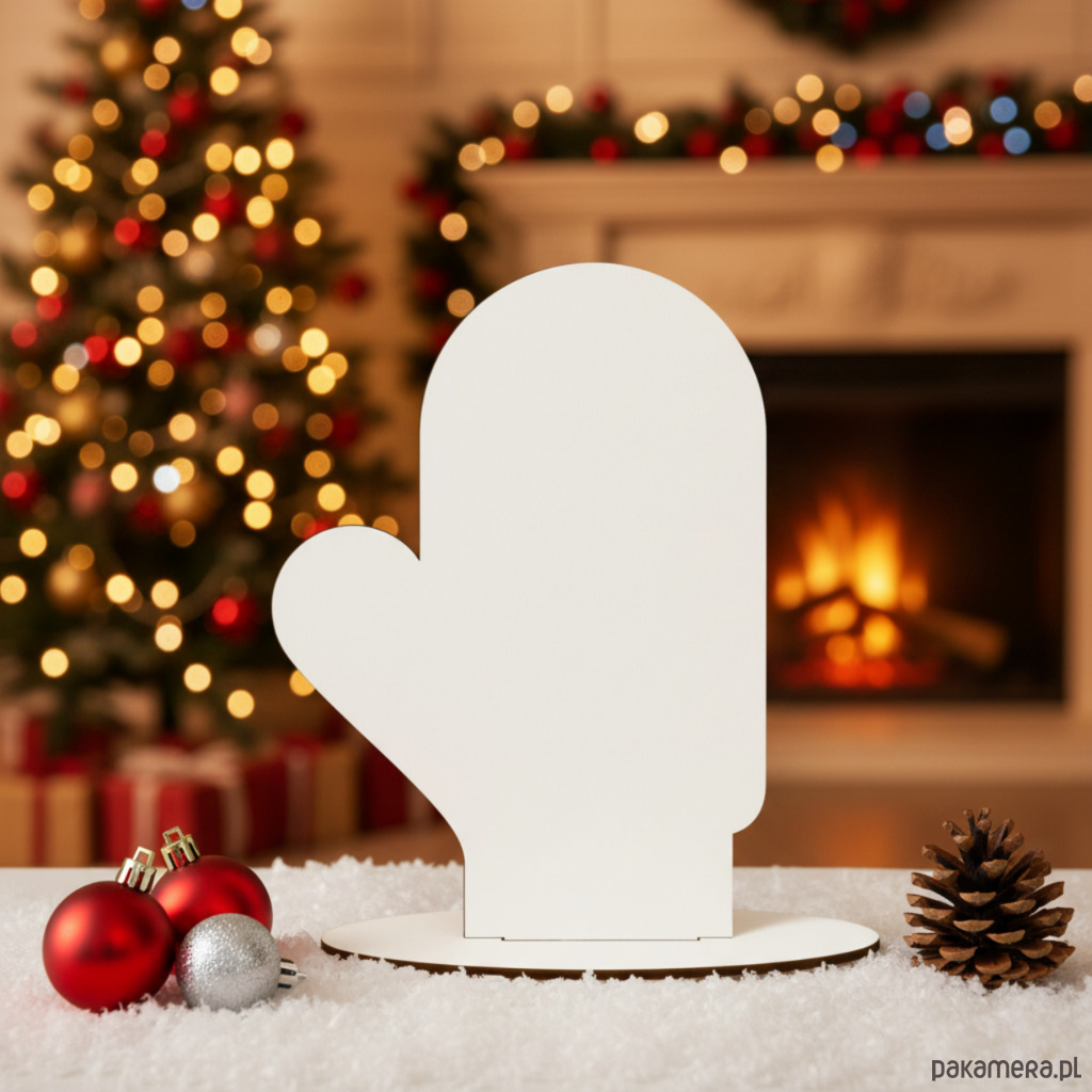 Drewniana Figurka Rękawiczka Rękawica na Święta BIAŁA Dekoracja Stojąca