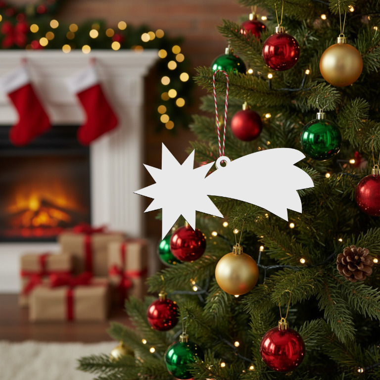 Wykonana z MDF jednostronnie laminowanego, o grubości 3 mm, jest lekka, trwała i gotowa do natychmiastowego zdobienia – malowania, dekorowania brokatem, decoupage czy innych technik DIY. Idealna do dekoracji bożonarodzeniowych, prezentów, zawieszek i projektów rękodzielniczych.