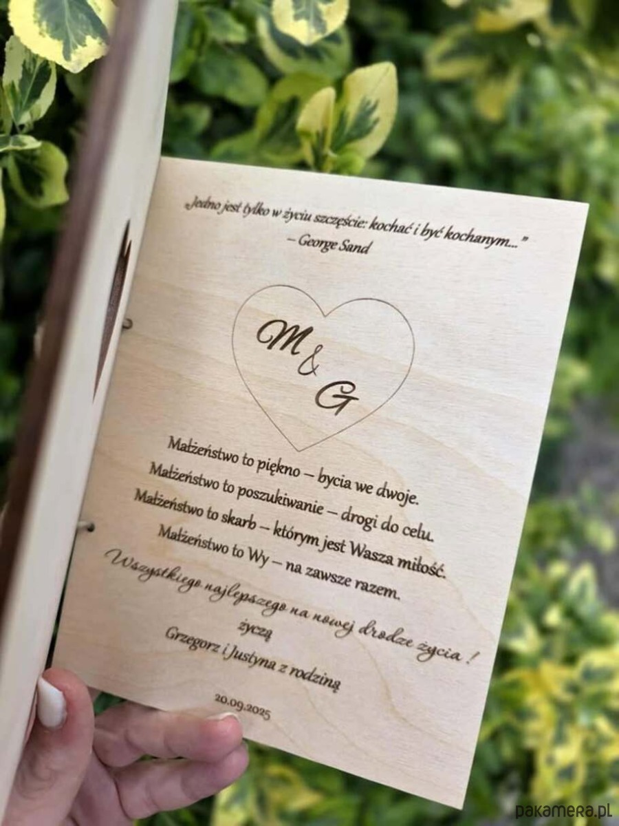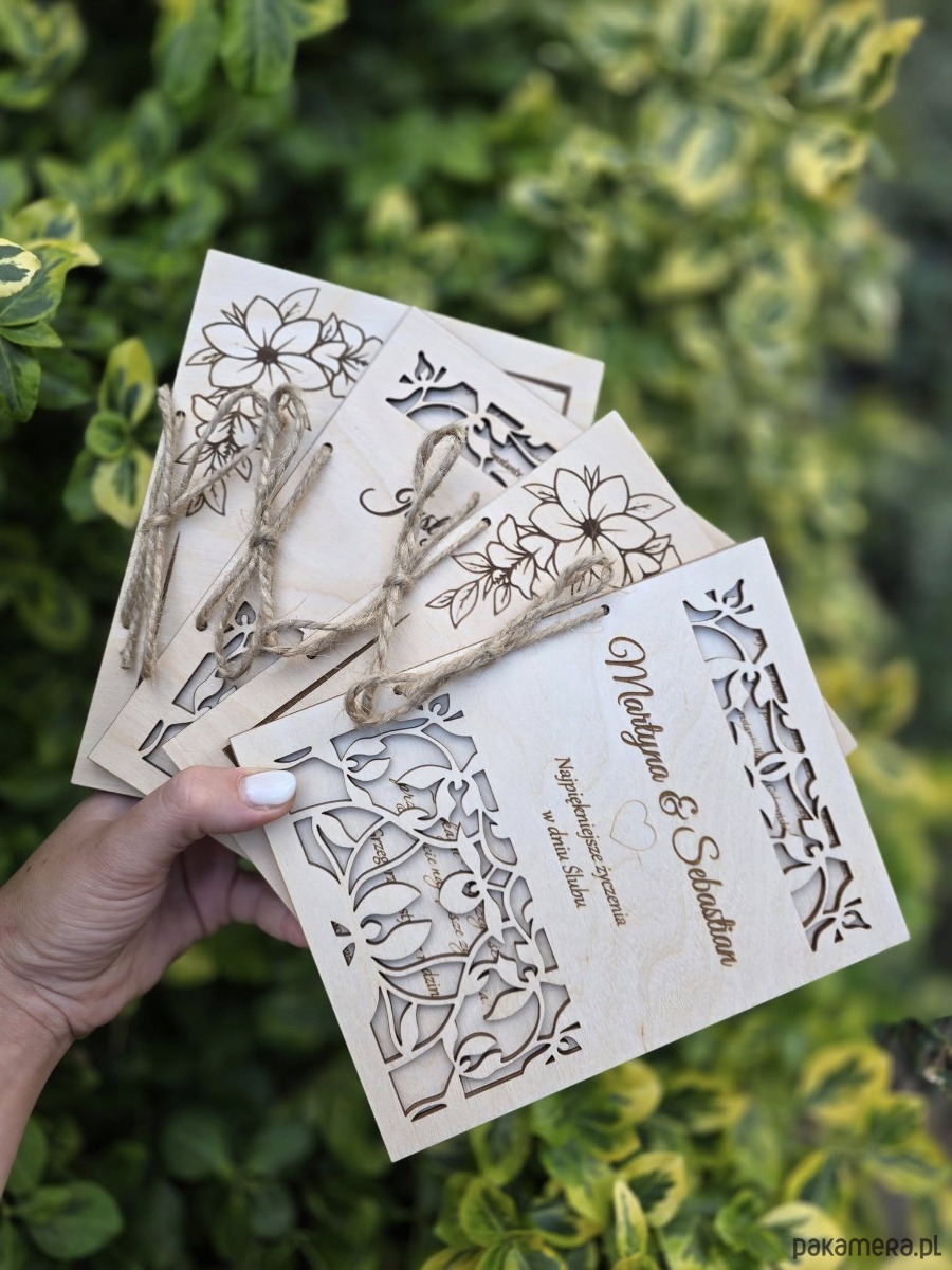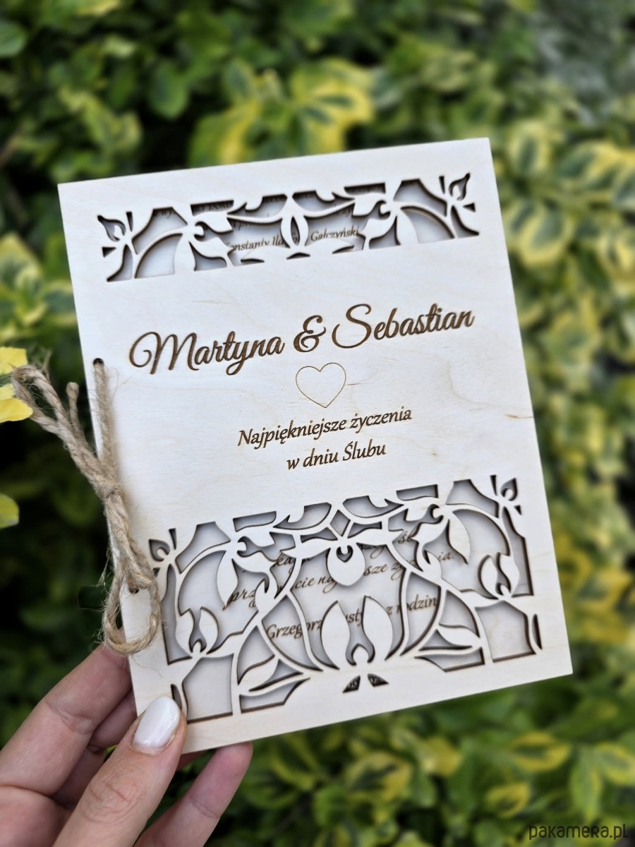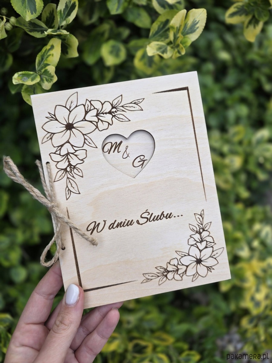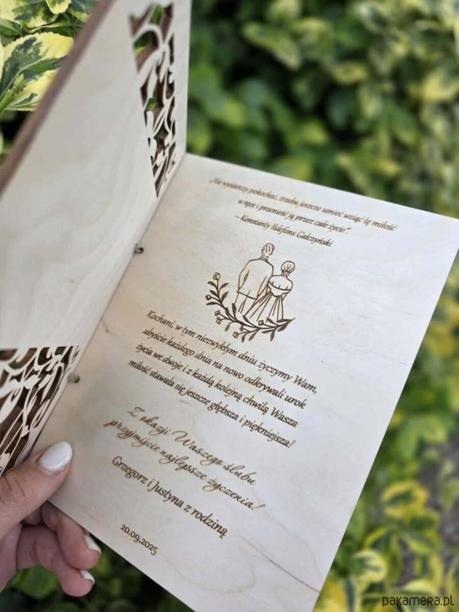 Personalizowana Drewniana Kartka na ślub z Grawerem