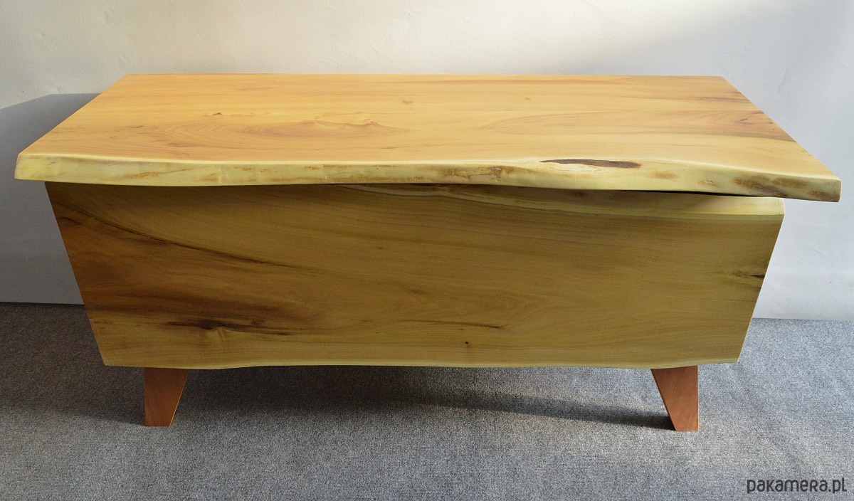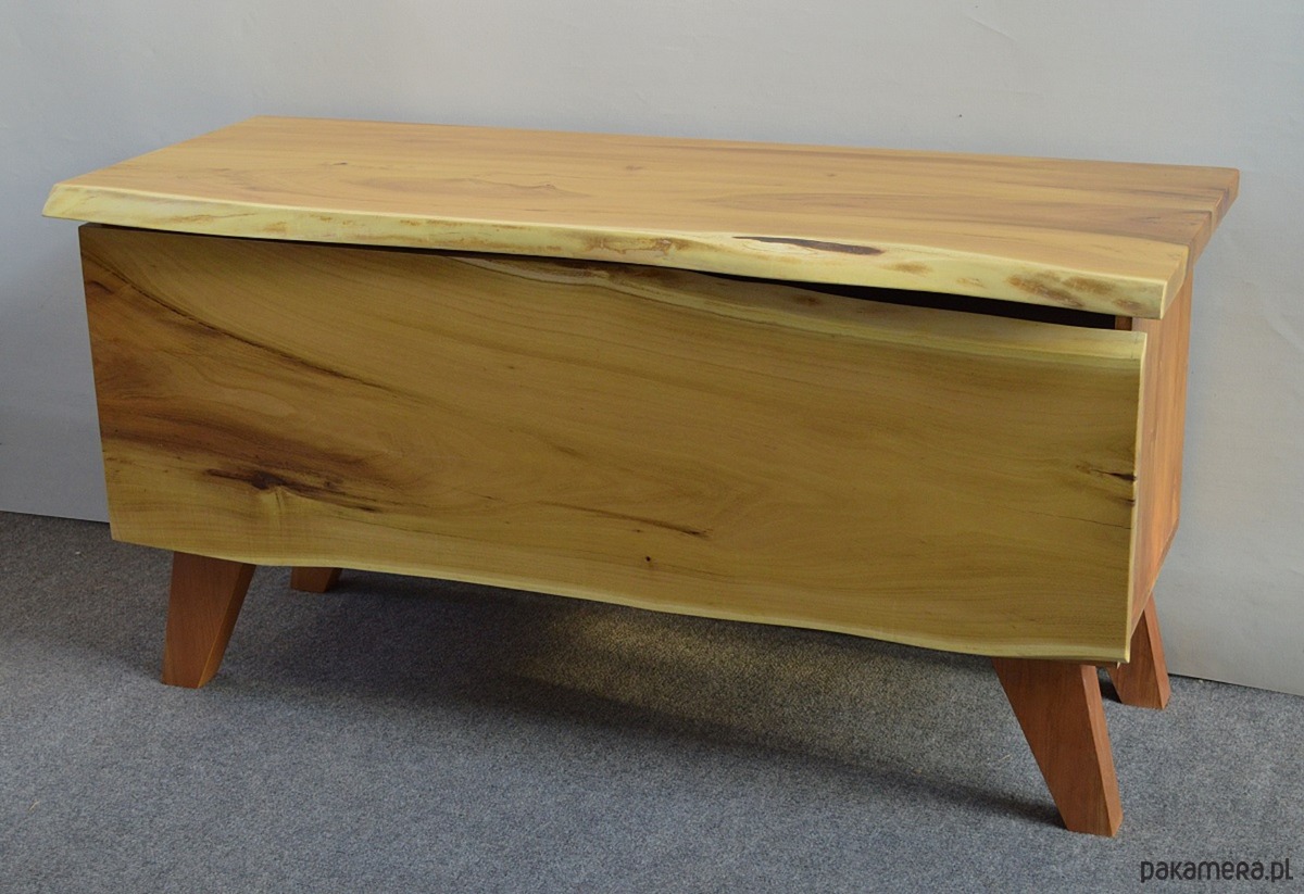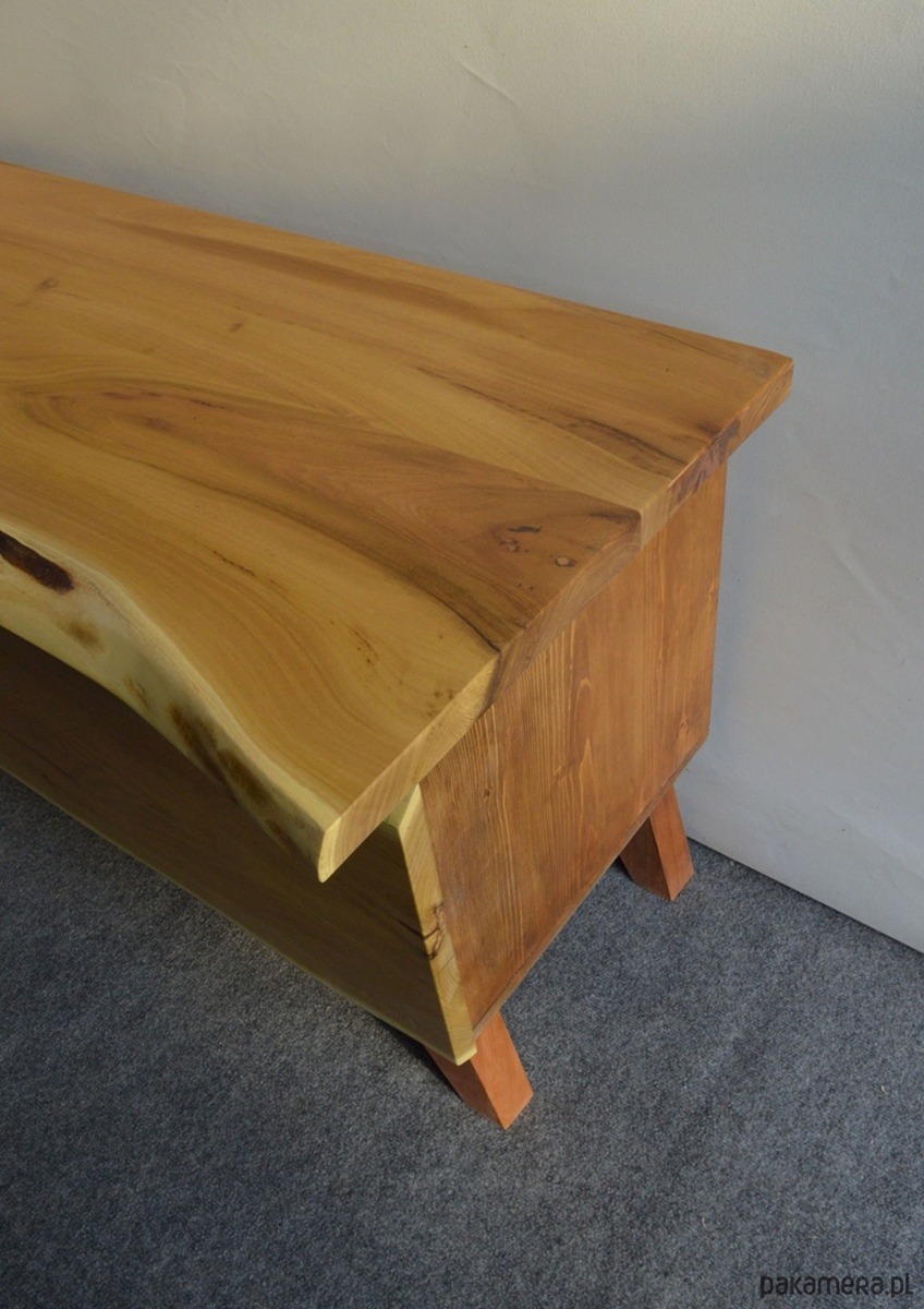 Rustykalny ale też w pełni użytkowy mebel o ciepłym charakterze. Ręczna obróbka stolarska oraz naturalne usłojenie i wybarwienie, sprawiają, że tak naprawdę każdy kolejny model, mimo jednolitej konstrukcji i wymiarów, będzie różnił się od poprzedniego. Wszystko zależy od wybranego przy zamówieniu rodzaju surowca.