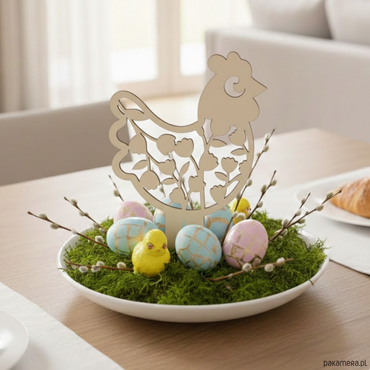 Wprowadź wiosenny, świąteczny klimat do swojego domu dzięki tej urocznej kurze z naturalnej sklejki brzozowej! Figurka ma stabilną podstawkę, dzięki czemu świetnie sprawdzi się jako dekoracja stołu, półki czy koszyczka wielkanocnego.