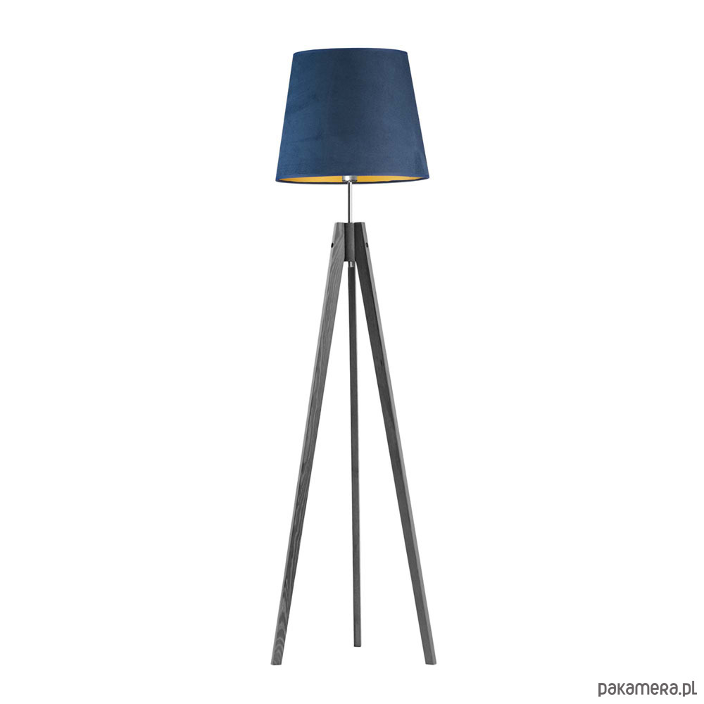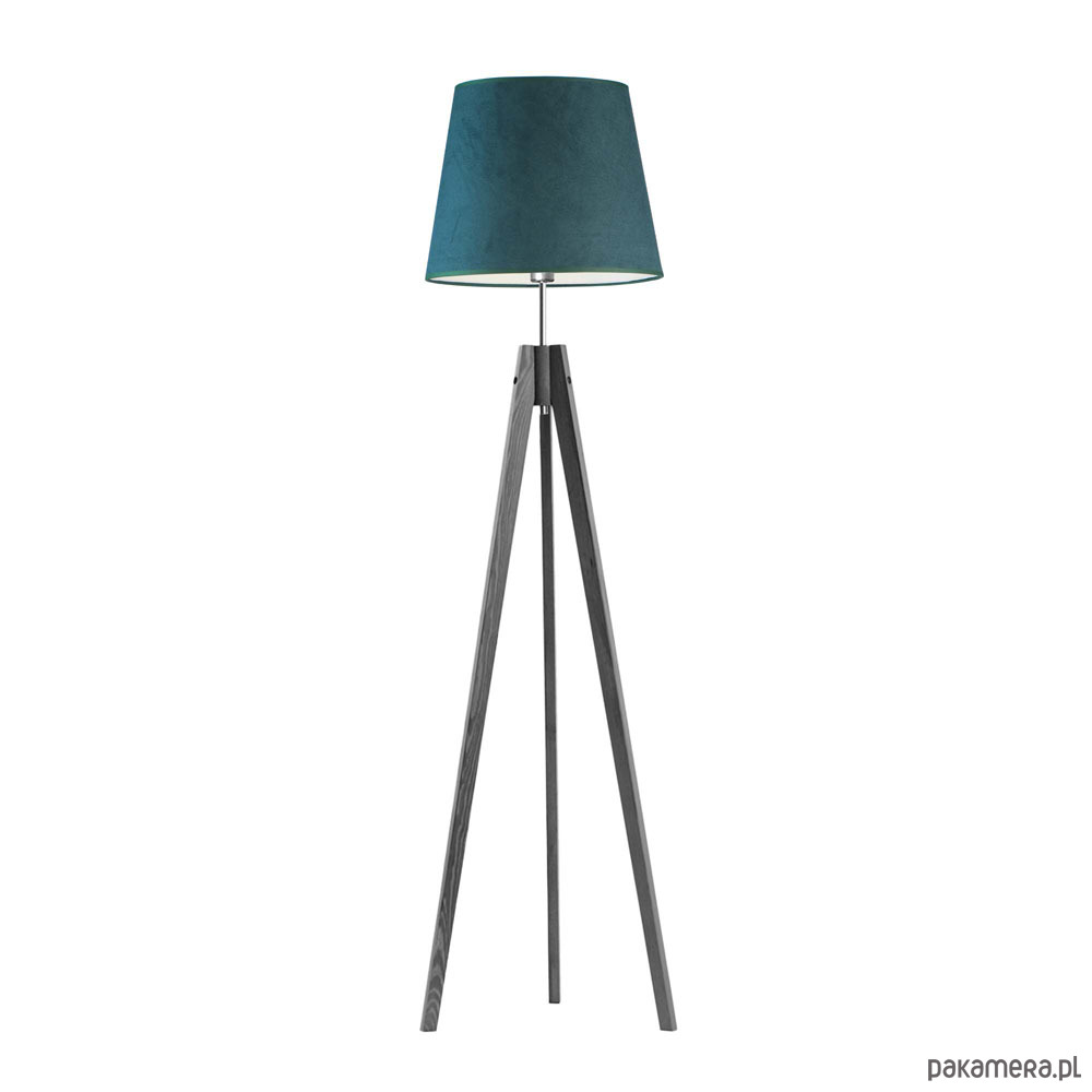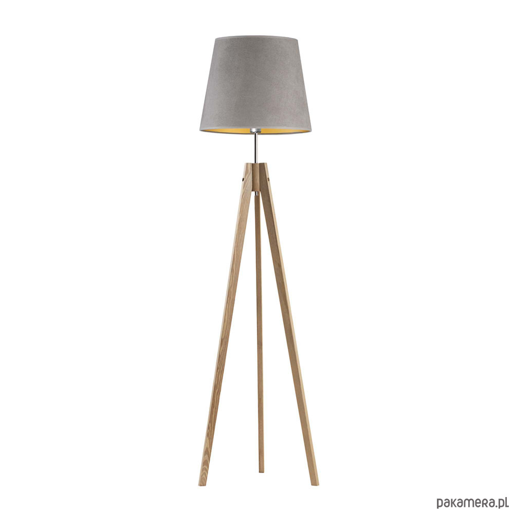 Drewniana lampa podłogowa do sypialni na trójnogu ARUBA VELUR