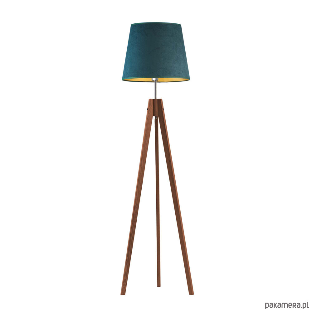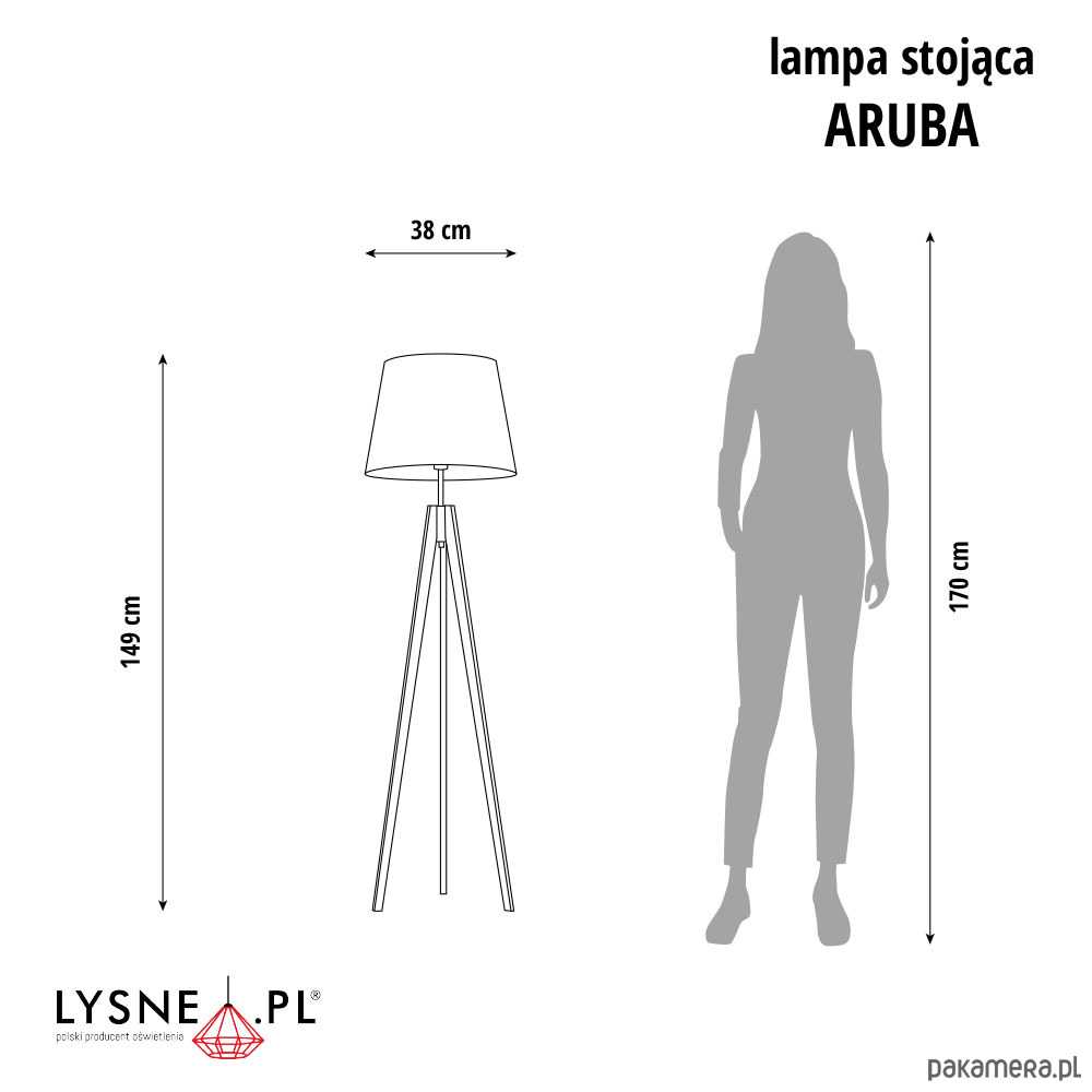 ARUBA VELUR prosta i delikatna lampa podłogowa, która będzie stanowić ciekawy element dekoracyjny każdej aranżacji. Stelaż w formie niebanalnego trójnogu na myśl przywołuje statyw aparatu fotograficznego. Lampa podłogowa o tak odmiennej, ciekawej formie będzie efektowną odmianą w stosunku do tradycyjnych modeli lamp stojących. Abażur w kształcie stożka pokryty jest miękką, welurową tkaniną. Aksamitny materiał wspaniale podkreśla światło wydobywające się z wnętrza klosza. Lekko połyskujący abażur dostępny jest w 3 kolorach do wyboru. Dodatkowo możemy też wybrać jego wnętrze: złote lub białe.