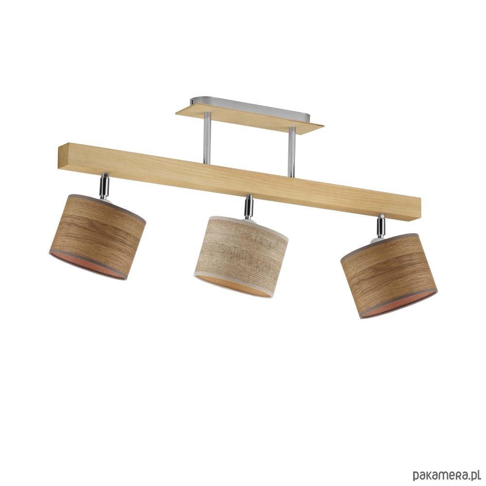 Materiał: stelaż - elementy drewna sosnowego, abażur - materiał PVC o strukturze forniru