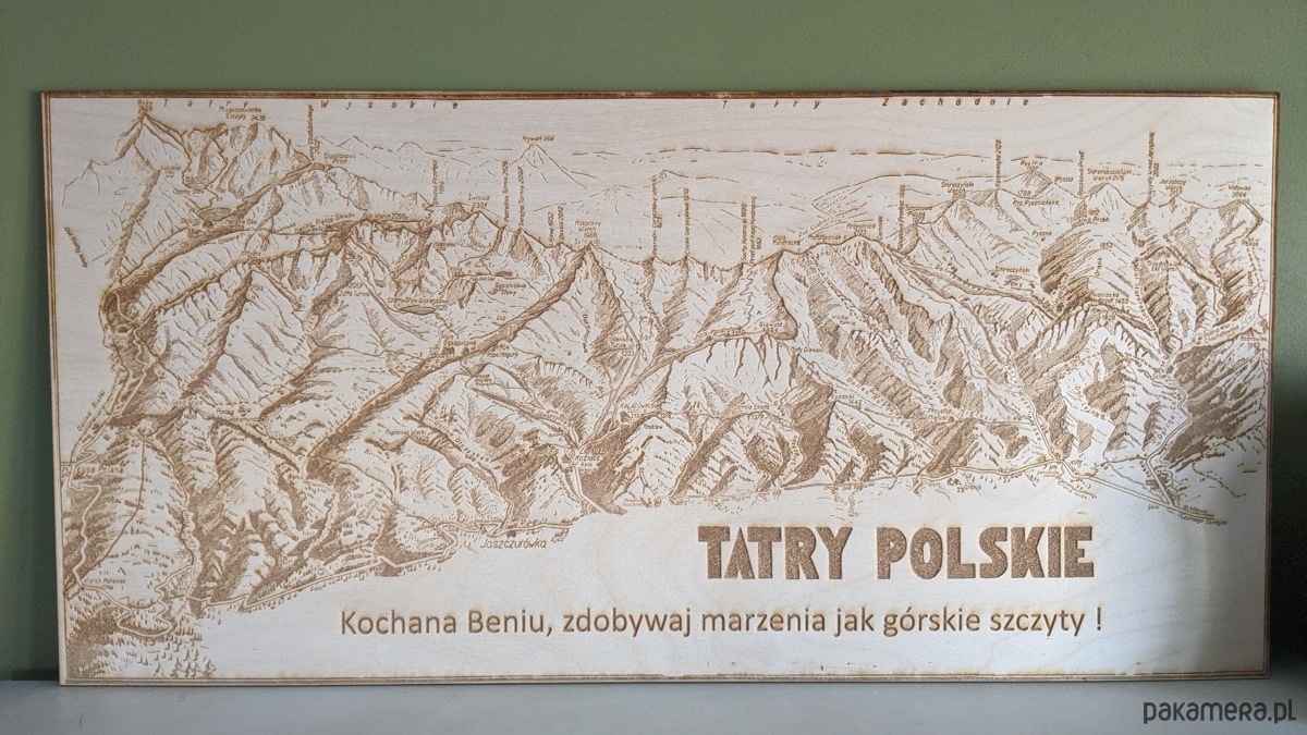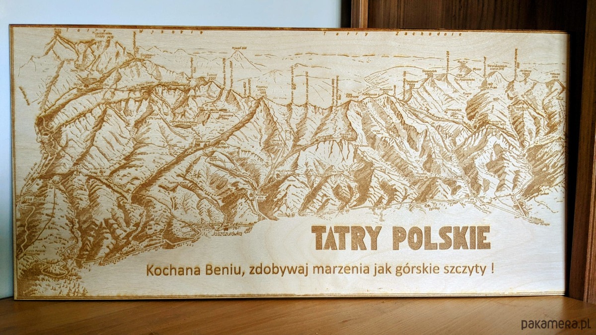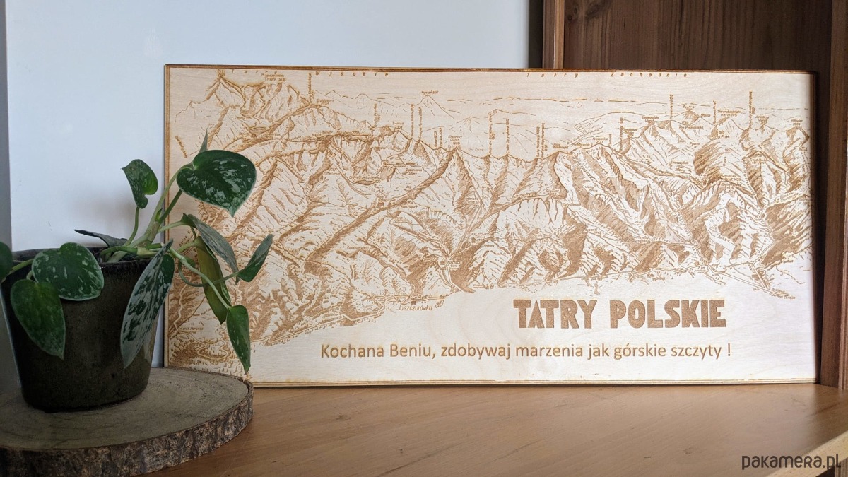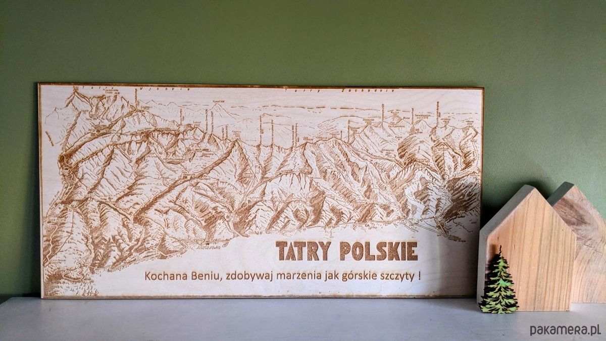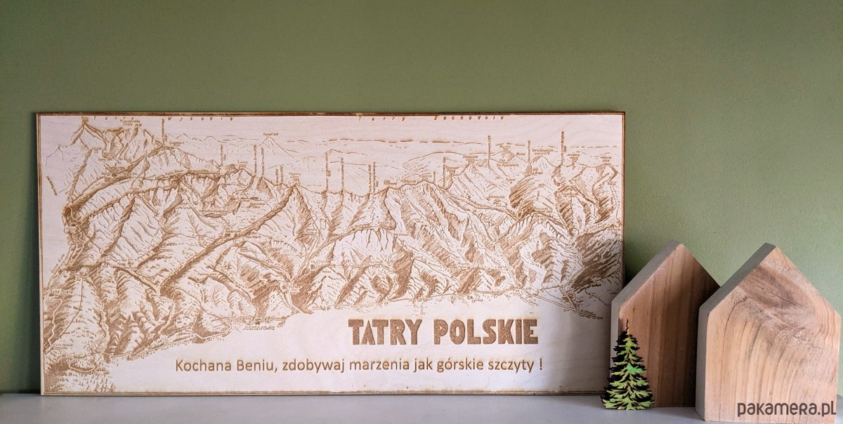 Drewniana mapa Tatr z możliwością dedykacji, Tatry na prezent