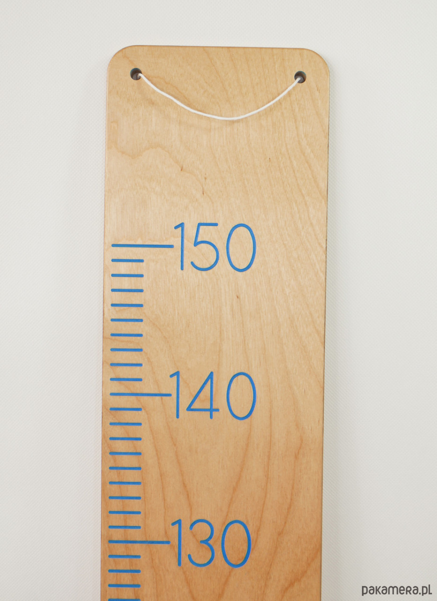 Dziurki oraz sznurek w miarce pozwolą na zawieszenie jej na ścianie w dowolnym miejsc, aby dziecko mogło mierzyć się samodzielnie lub z pomocą rodziców.