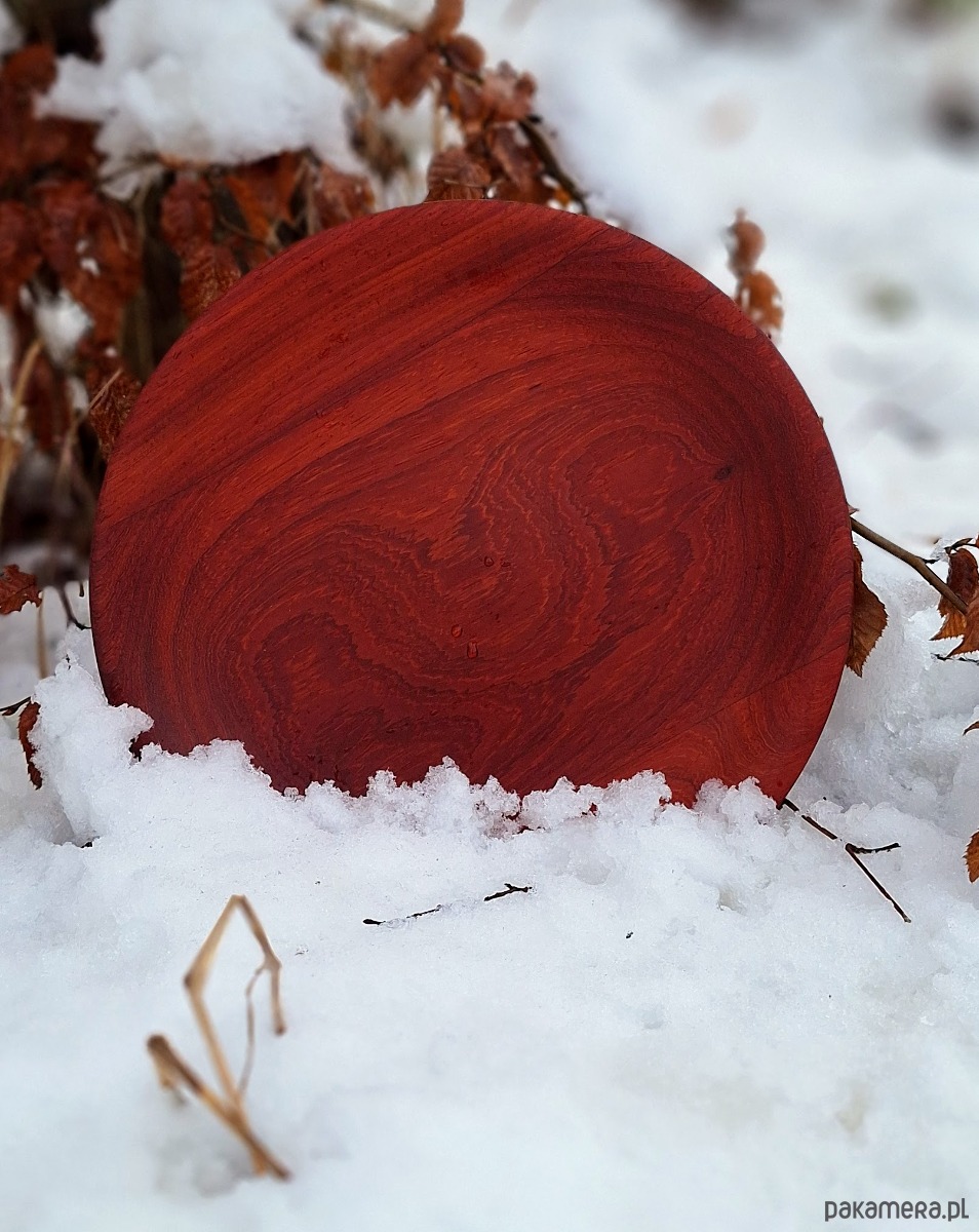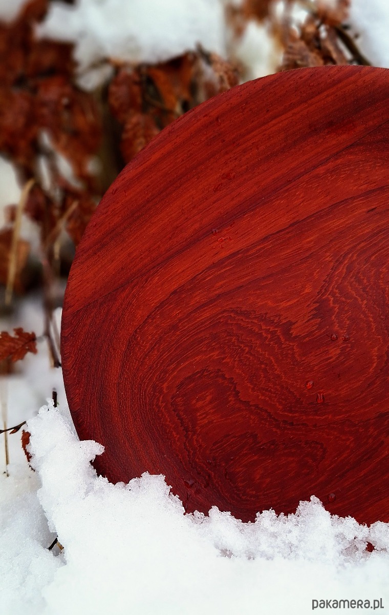 Padouk, znany ze swojej trwałości i przepięknych, ciepłych tonów — od ognistej czerwieni po głęboki miodowy brąz — nadaje tej misie niepowtarzalny charakter i szlachetność.