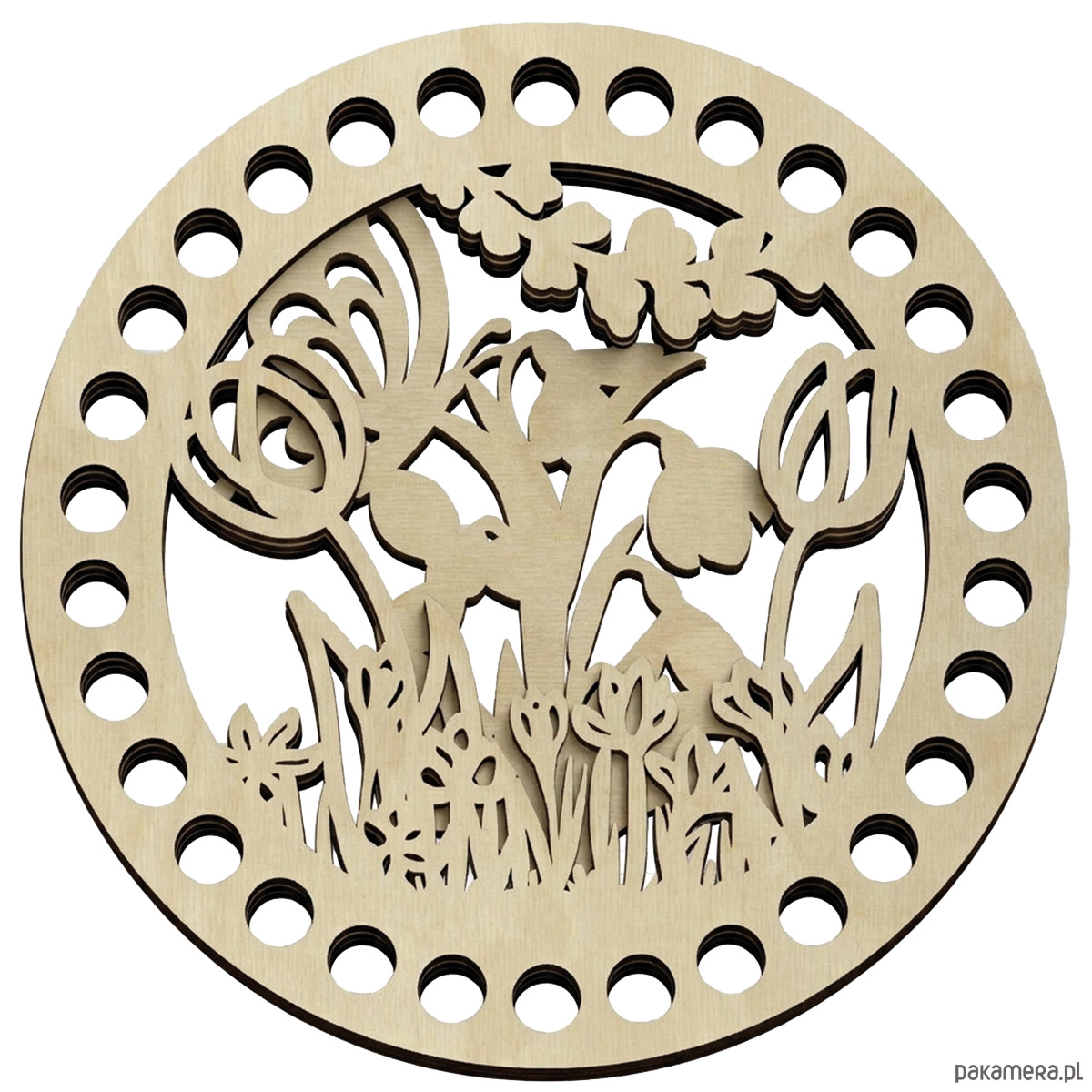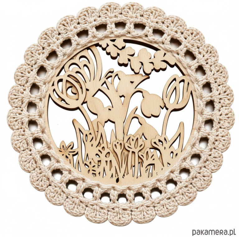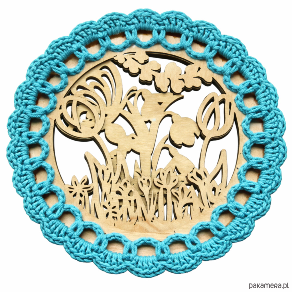 Praktyczna i estetyczna baza do szydełkowania wykonana ze sklejki w formie okręgu o średnicy 15 cm. Model dwuwarstwowy z ażurowym wzorem doskonale sprawdzi się jako solidna podstawa do różnego rodzaju projektów handmade.