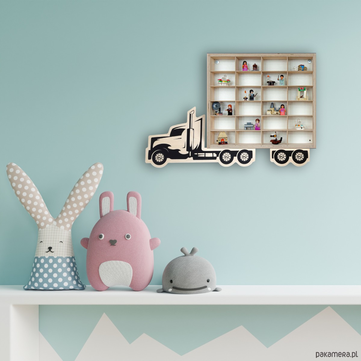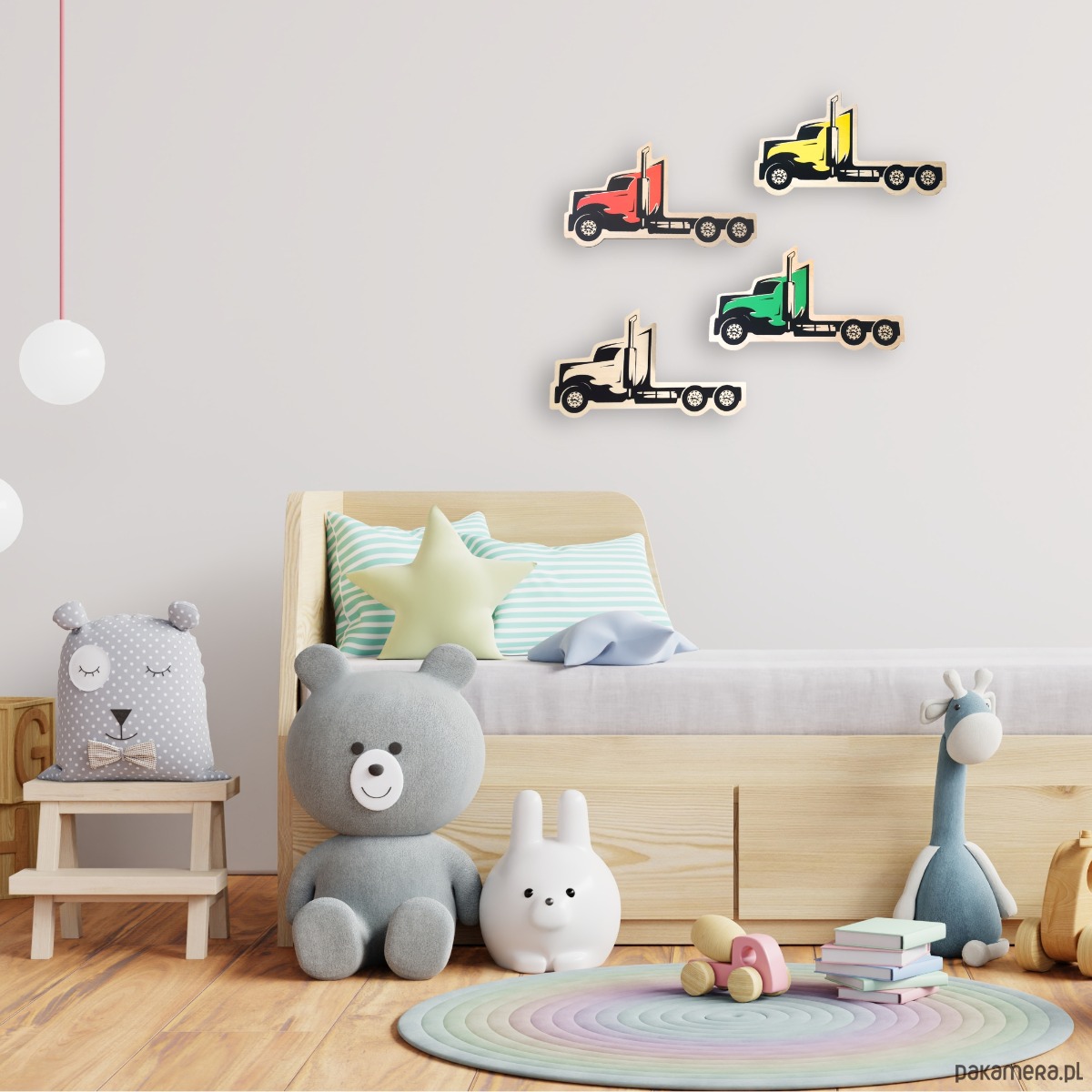 Ręcznie wykonana , drewniana półka z grafiką w kształcie Amerykańskiej Ciężarówki. (kolor naturalny drewna - brzoza)