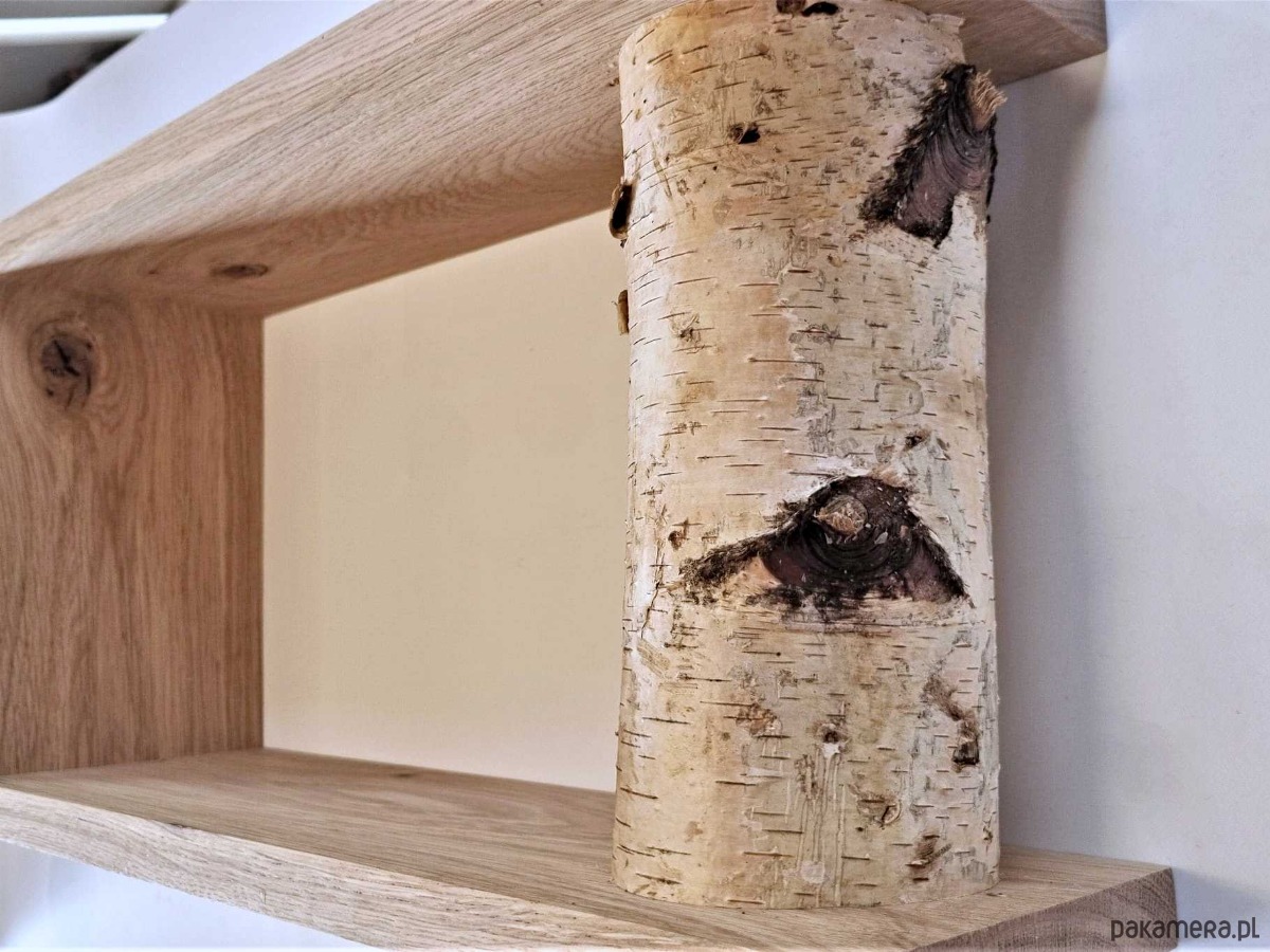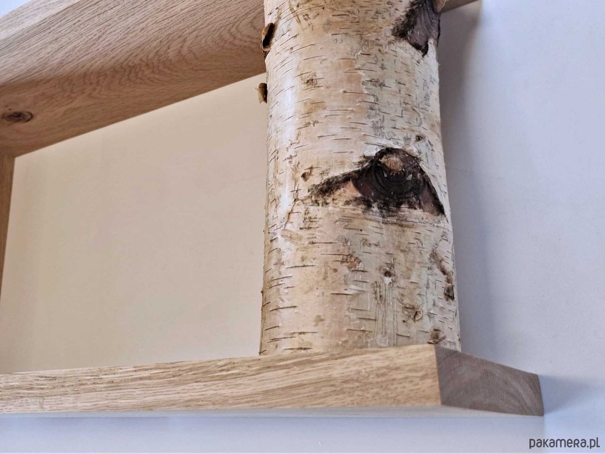 W przypadku tego produktu słowa "naturalnie piękna" mają dodatkowe, wyjątkowe znaczenie. Tutaj oprócz naturalnej dębowej deski, z której wykonaliśmy półkę, umieściliśmy także naturalny pień brzozy. Ten niecodzienny dodatek z pewnością doda niesamowitego klimatu w salonie, przedpokoju czy sypialni. Kawałek lasu w Twoim domu!