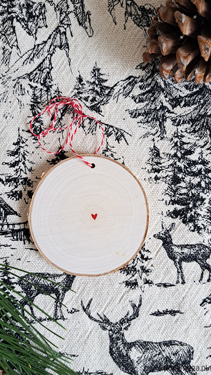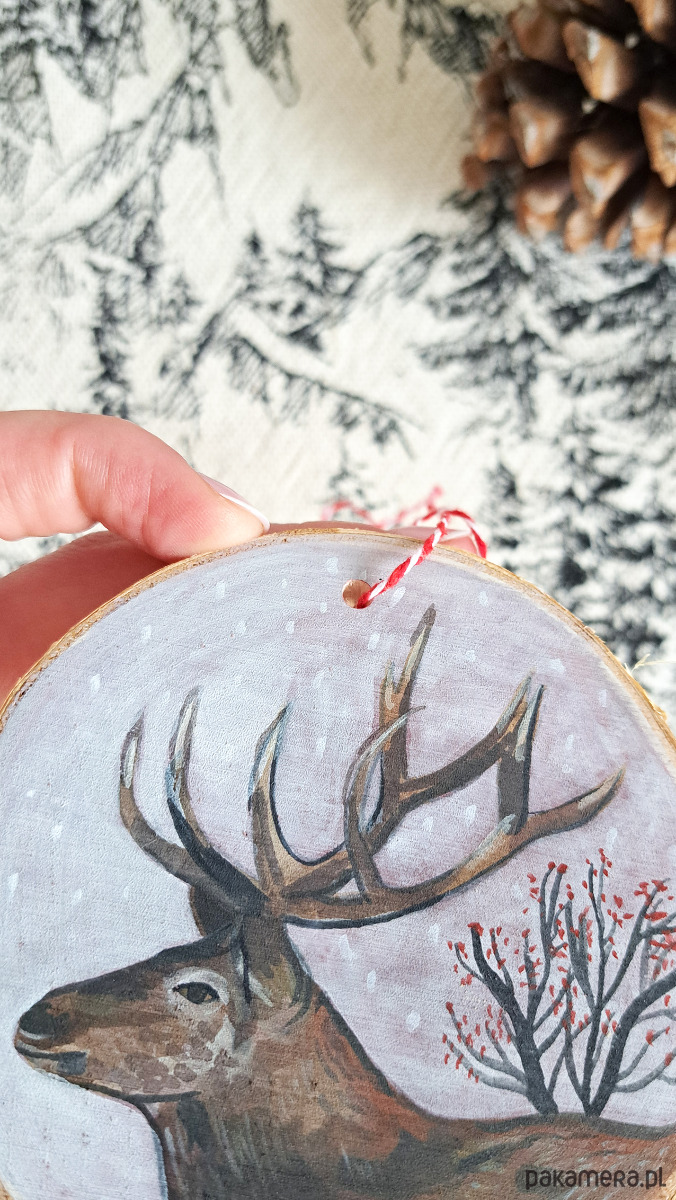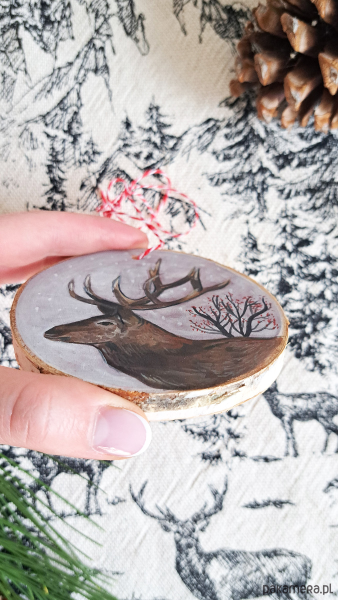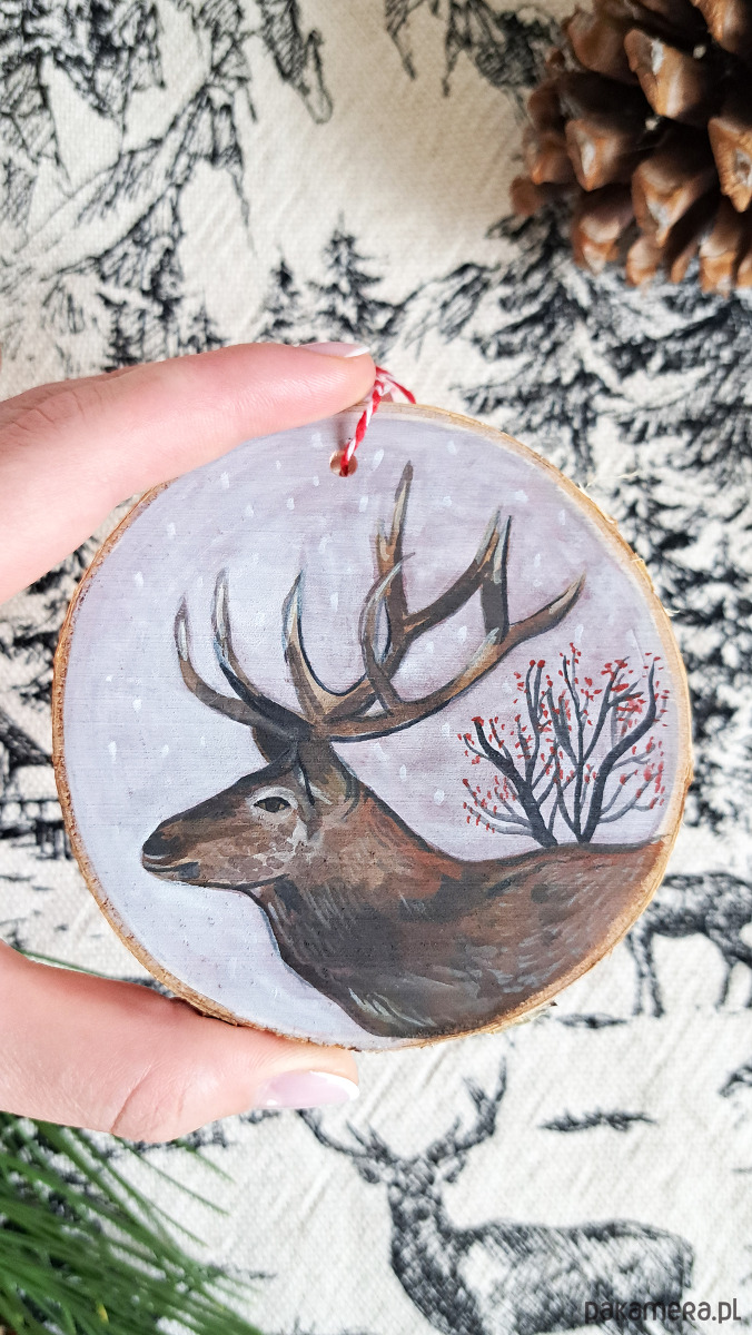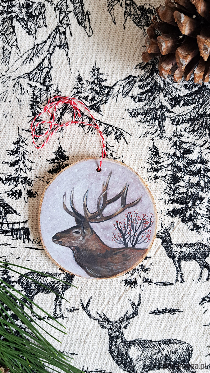 Drewniana, ręcznie robiona ozdoba choinkowa, możliwa personalizacja, jeleń