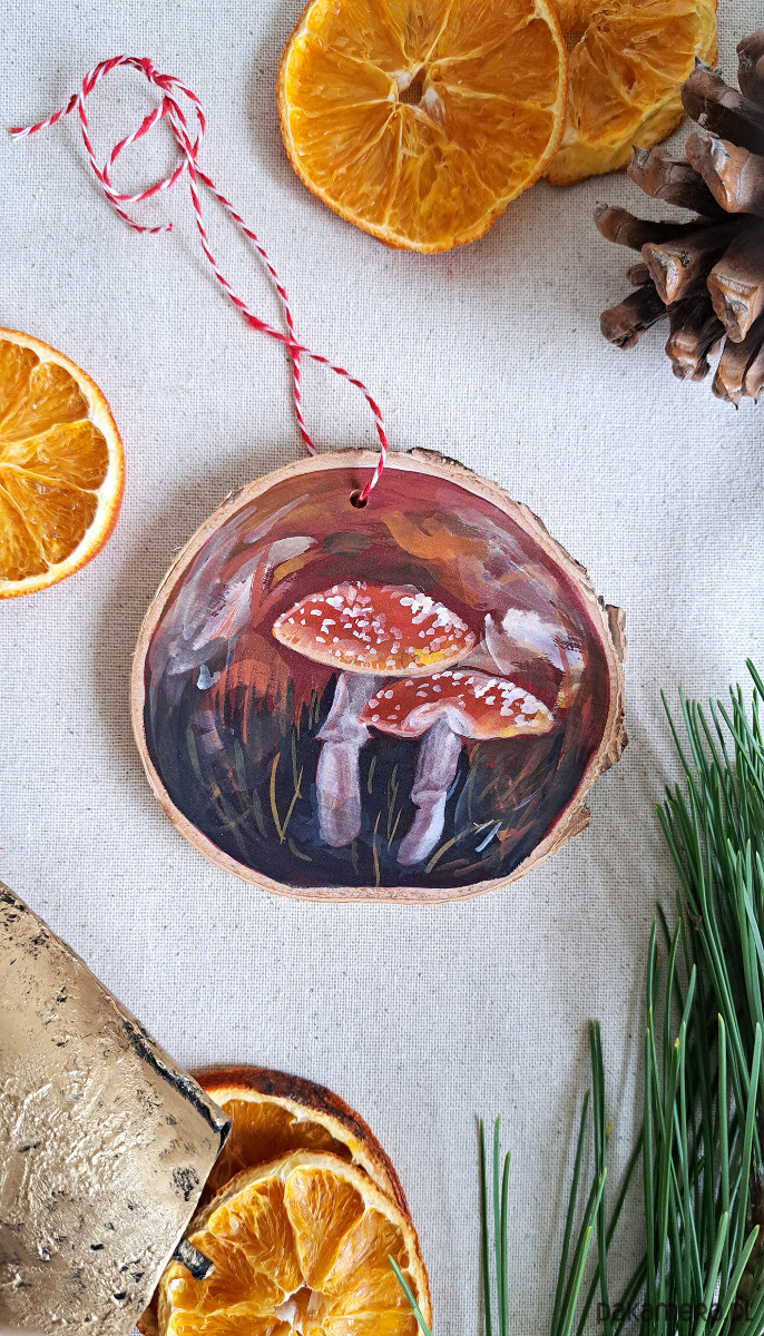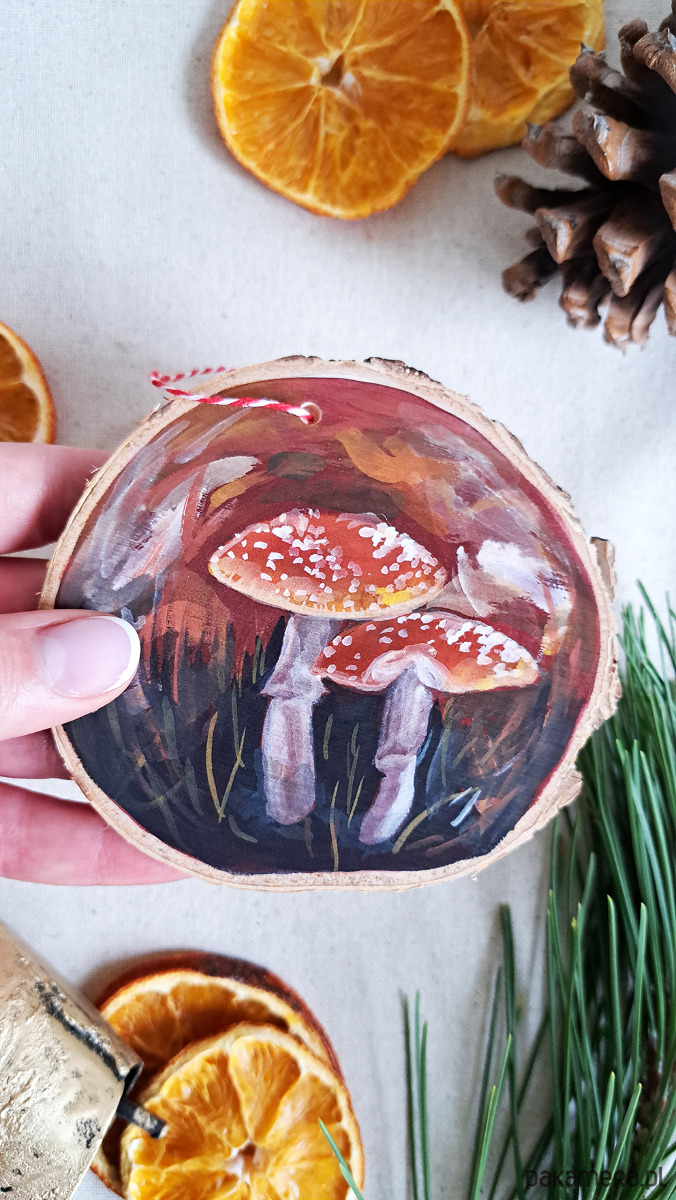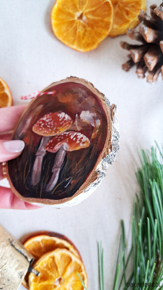 Ręcznie robione ozdoby świąteczne i choinkowe z plastrów drewna, ręcznie malowane przeze mnie, handmade.