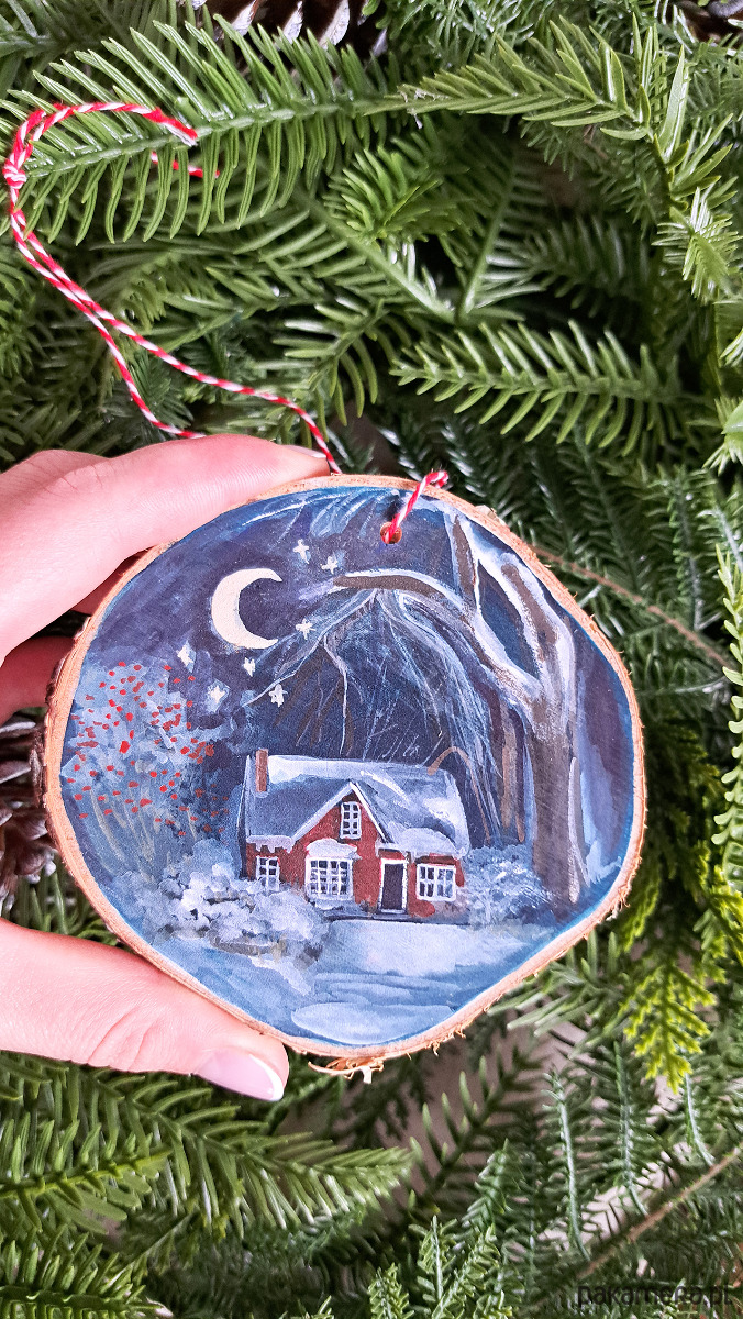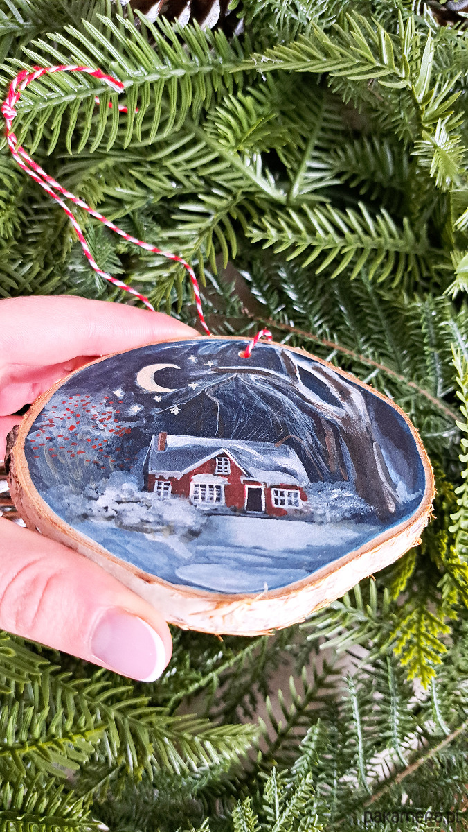 Ręcznie robione ozdoby świąteczne i choinkowe z plastrów drewna, ręcznie malowane przeze mnie, handmade.
