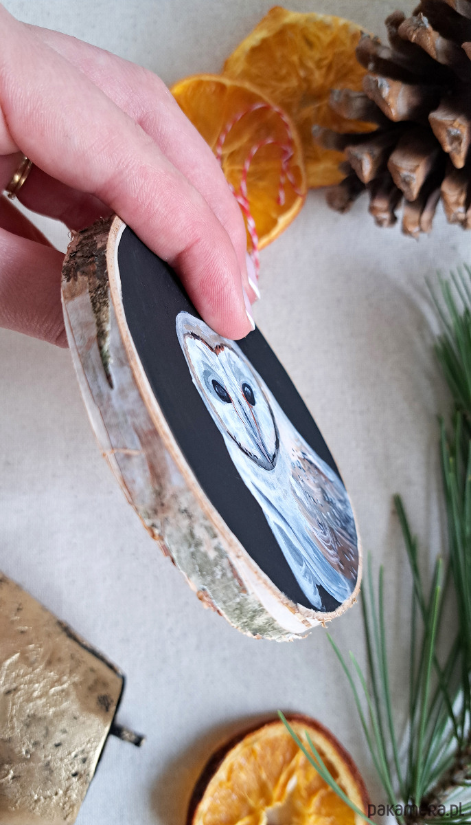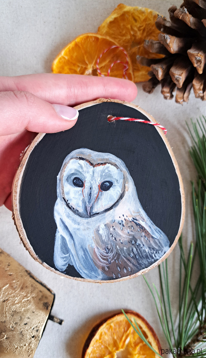 Ręcznie robione ozdoby świąteczne i choinkowe z plastrów drewna, ręcznie malowane przeze mnie, handmade.