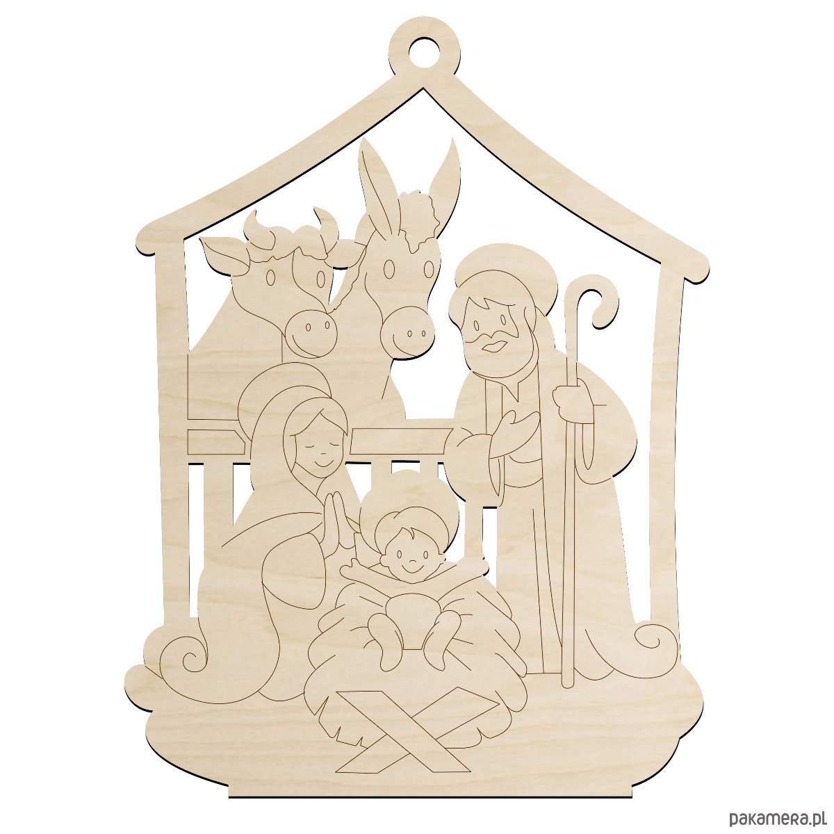 Drewniana Stajenka z Grawerem 10cm Zawieszka Ozdoba Choinkowa Decoupage DIY