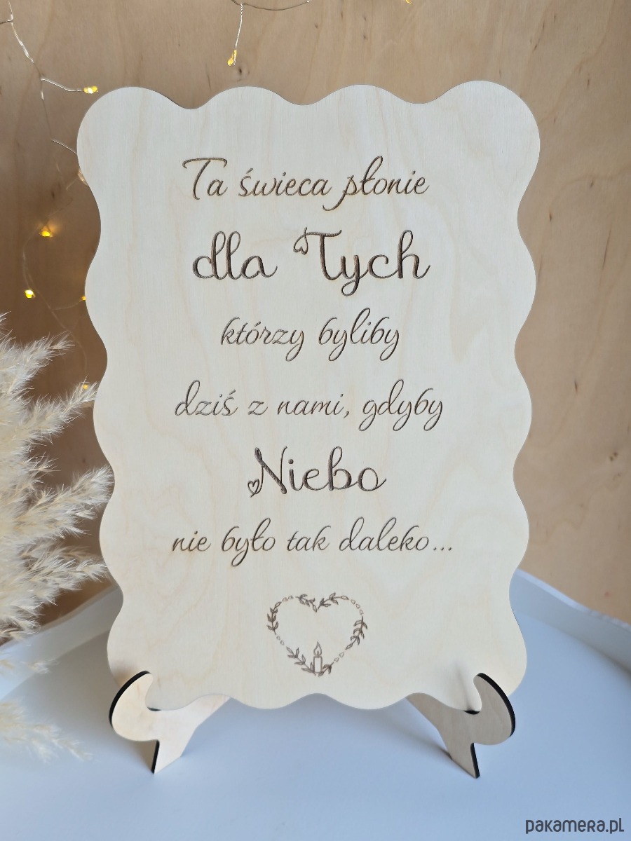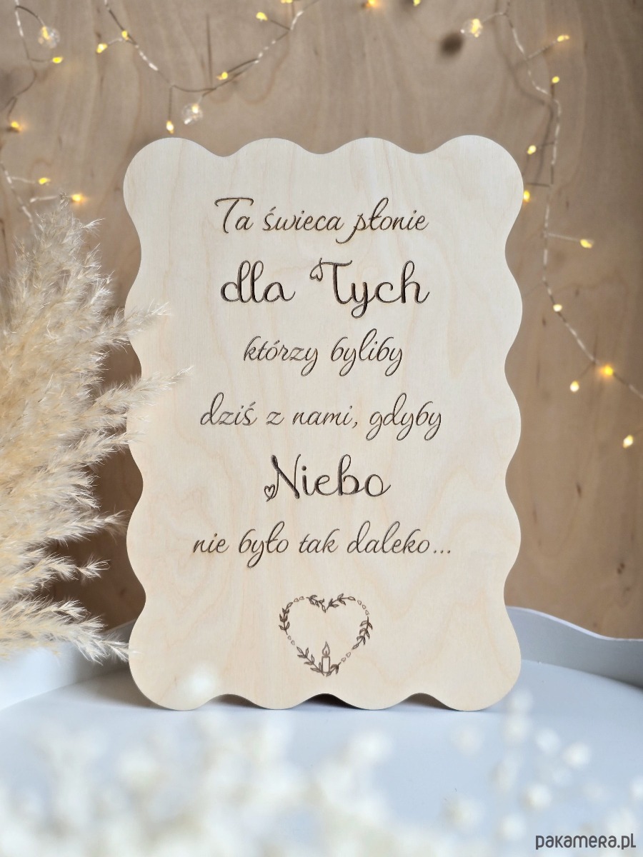 🕯️To sposób, żeby upamiętnić bliskich, którzy odeszli, ale nadal są obecni w Waszych sercach. Często ustawiana jest obok świecy pamięci jako ważny, symboliczny element uroczystości. Naturalna sklejka i delikatny grawer dobrze wpisują się w styl boho, rustykalny i klasyczny.