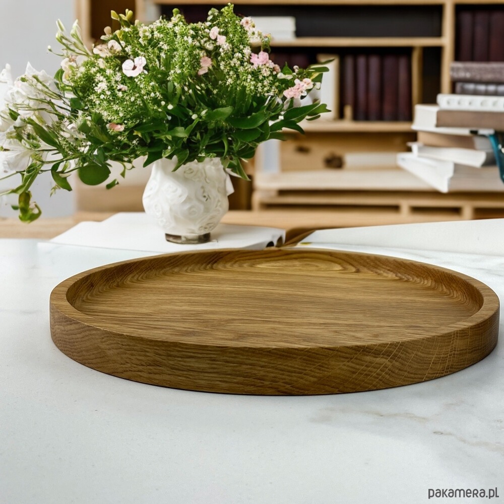Nasza dębowa taca z pewnością zachwyci nie jedną osobę. Delikatnie zaokrąglona jest niezwykle poręczna. Dzięki solidnemu wykonaniu napewno będzie prezentować się doskonale przez długie lata. Stworzona z wysokiej jakości Całego kawałka drewna dębowego (nie klejona), zaimpregnowana olejem oraz naturalnym woskiem ekologicznym, który posiada certyfikat „zgodny do kontaktu z żywnością”, dzięki czemu jest bezpieczna w użytkowaniu.