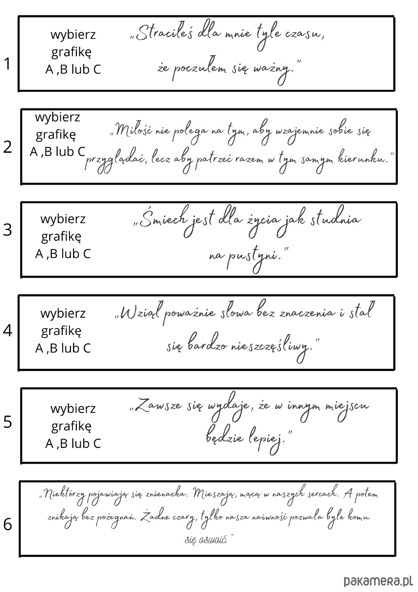 Po zamówieniu prosimy o przesłanie wiadomości z wybranym nr i grafiką strona prawi i strona lewa