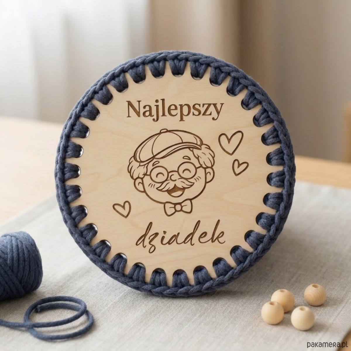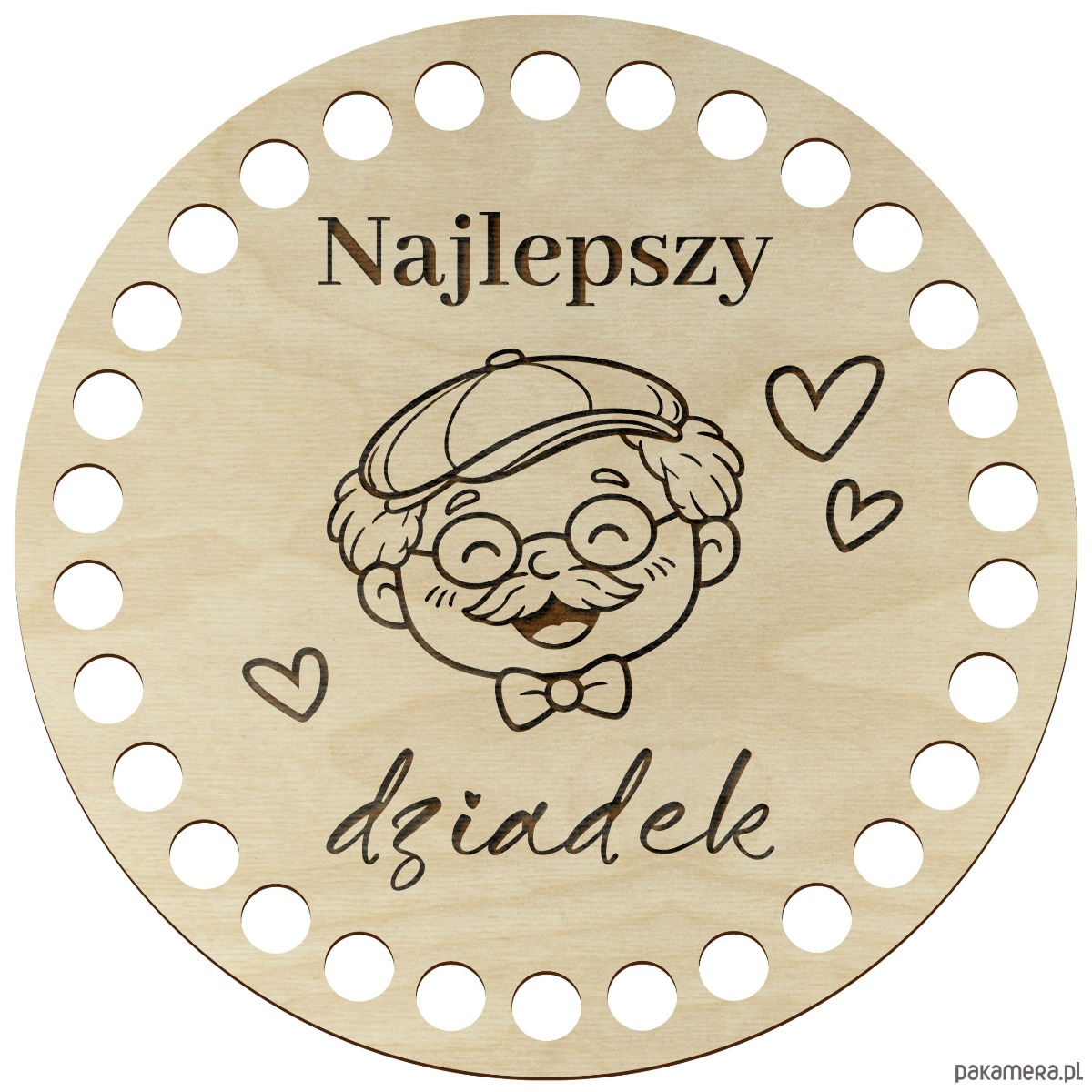 Okrągła baza do szydełkowania wykonana z wysokiej jakości sklejki brzozowej. Idealna do tworzenia ręcznie robionych koszyczków i prezentów dla dziadka z wyjątkowym, personalizowanym charakterem.