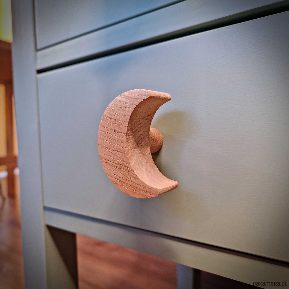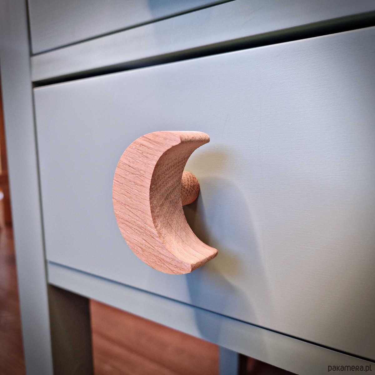 Drewniane gałki do mebli, księżyc, uchwyt z drewna