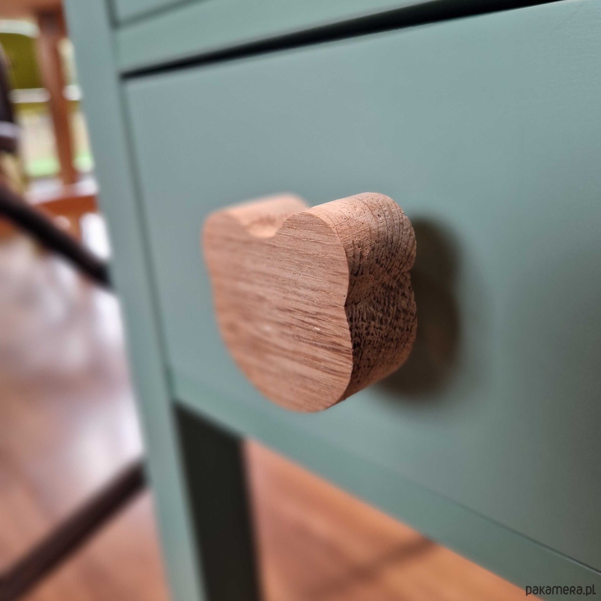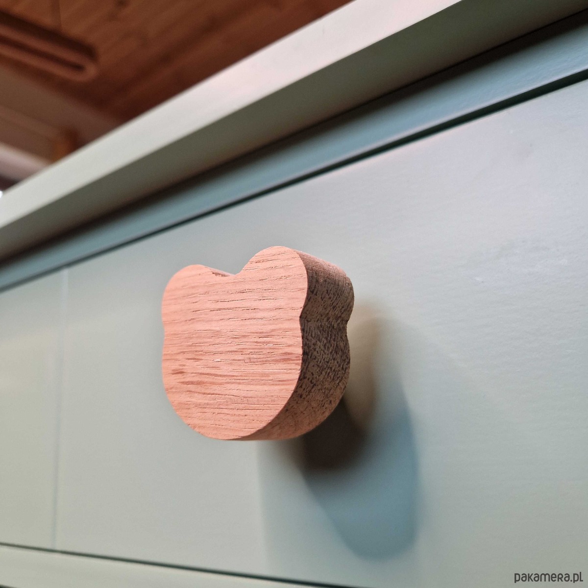 Urocza drewniana gałka do mebli w kształcie misia to ciepły, przyjazny akcent, który doskonale uzupełni wystrój wnętrza inspirowanego naturą. Wykonana z litego drewna dębowego, starannie opracowana i zabezpieczona ekologicznym, bezbarwnym olejem, łączy trwałość z naturalnym urokiem drewna.