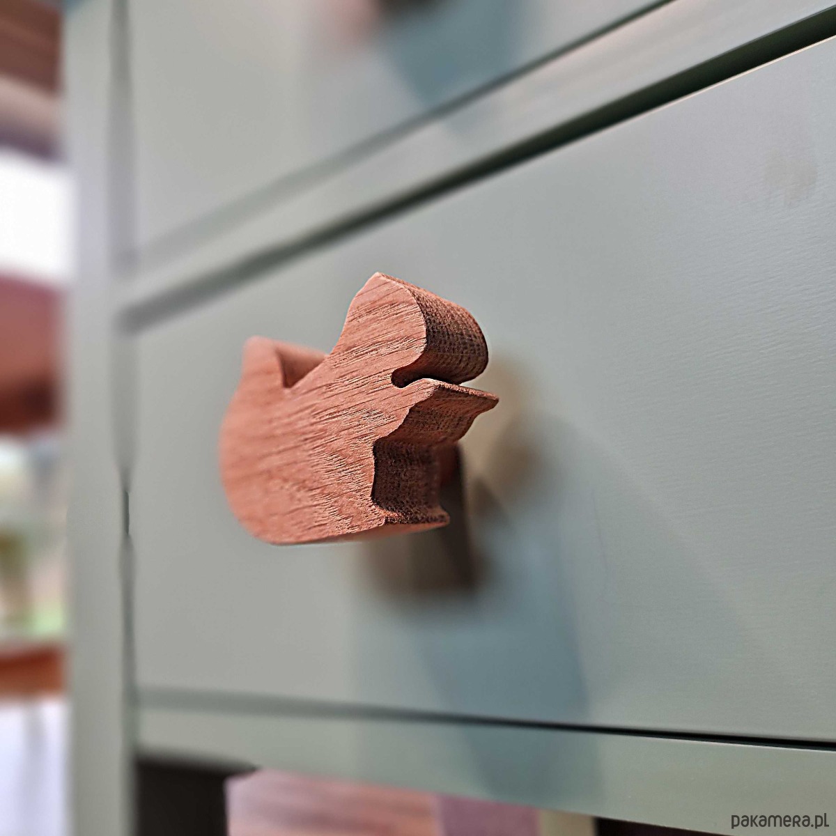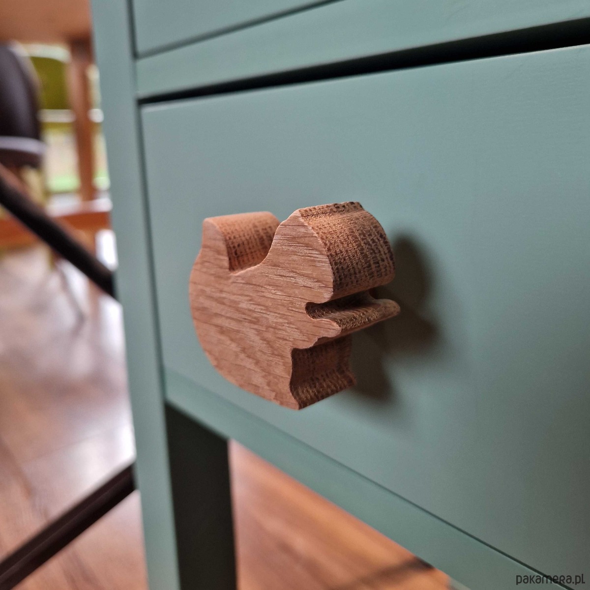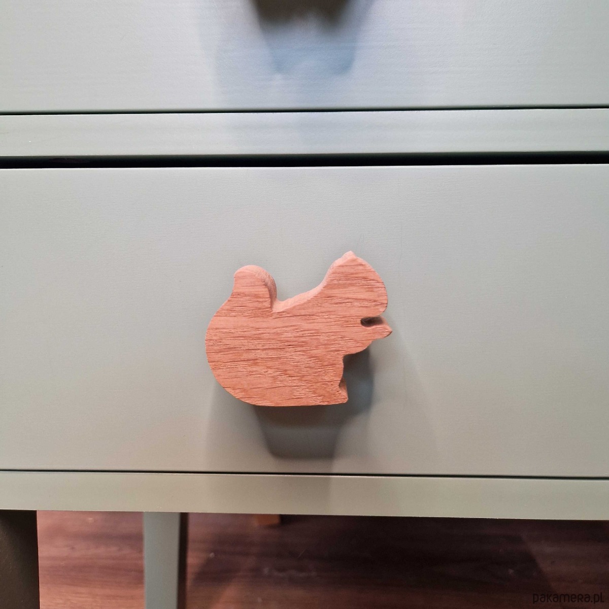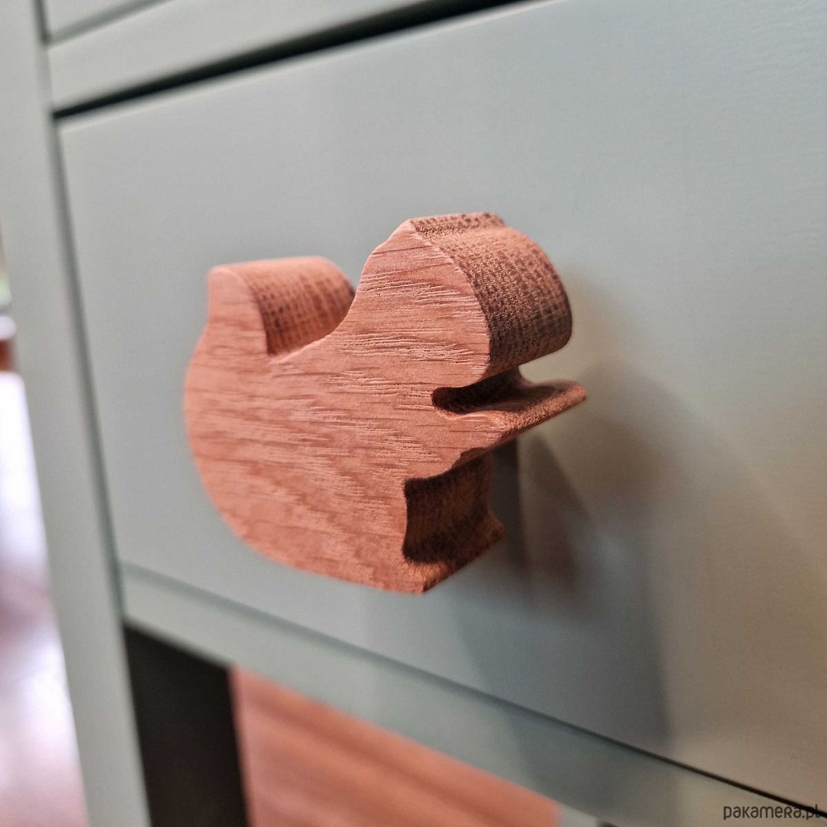 Drewniana gałka do mebli „Wiewiórka” – leśny motyw z litego dębu