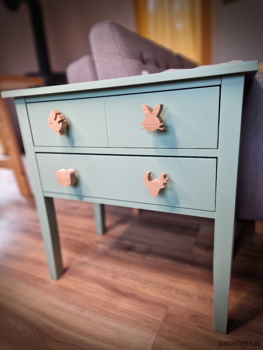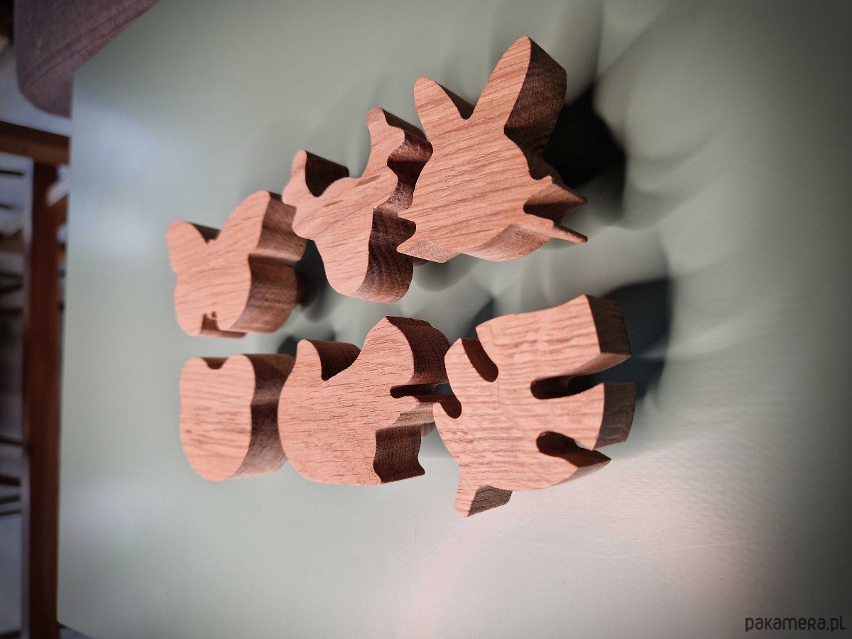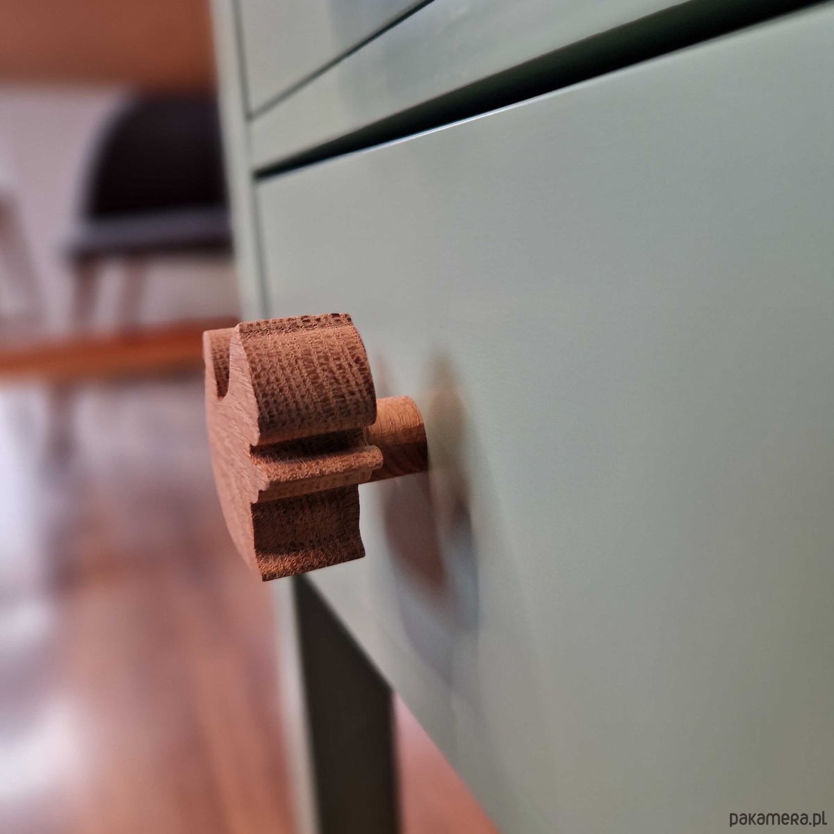 Ponieważ gałki wykonujemy na zamówienie, każda sztuka powstaje z najwyższą starannością. Dzięki temu możemy wyciąć wszystkie gałki z jednej deski, co daje jednolity kolor, spójną strukturę drewna i wyjątkowy efekt wizualny. To wymaga nieco więcej czasu, ale efekt jest zdecydowanie tego wart.