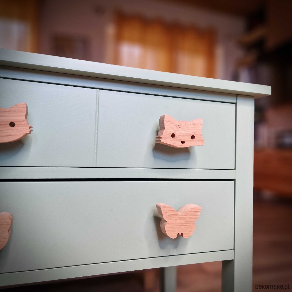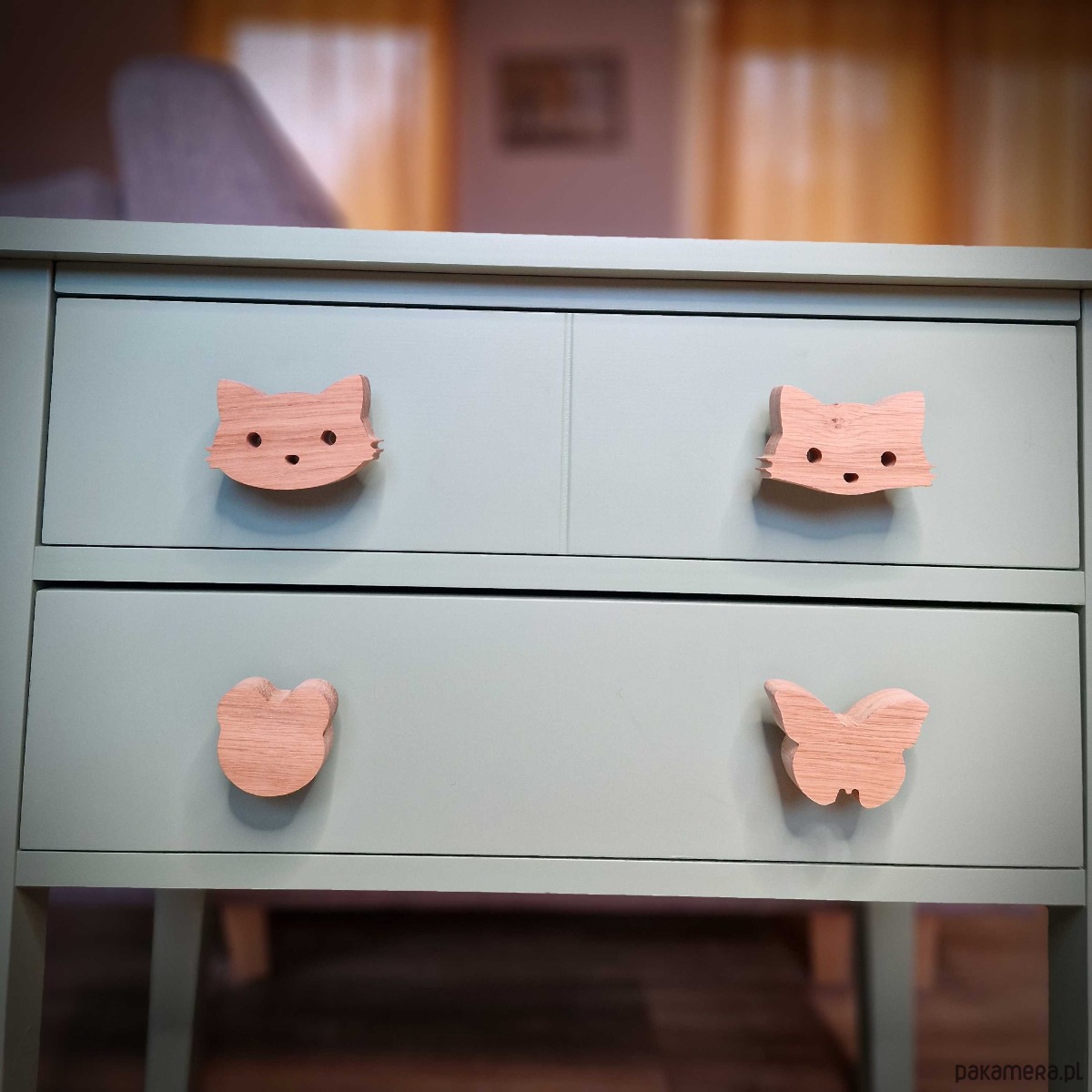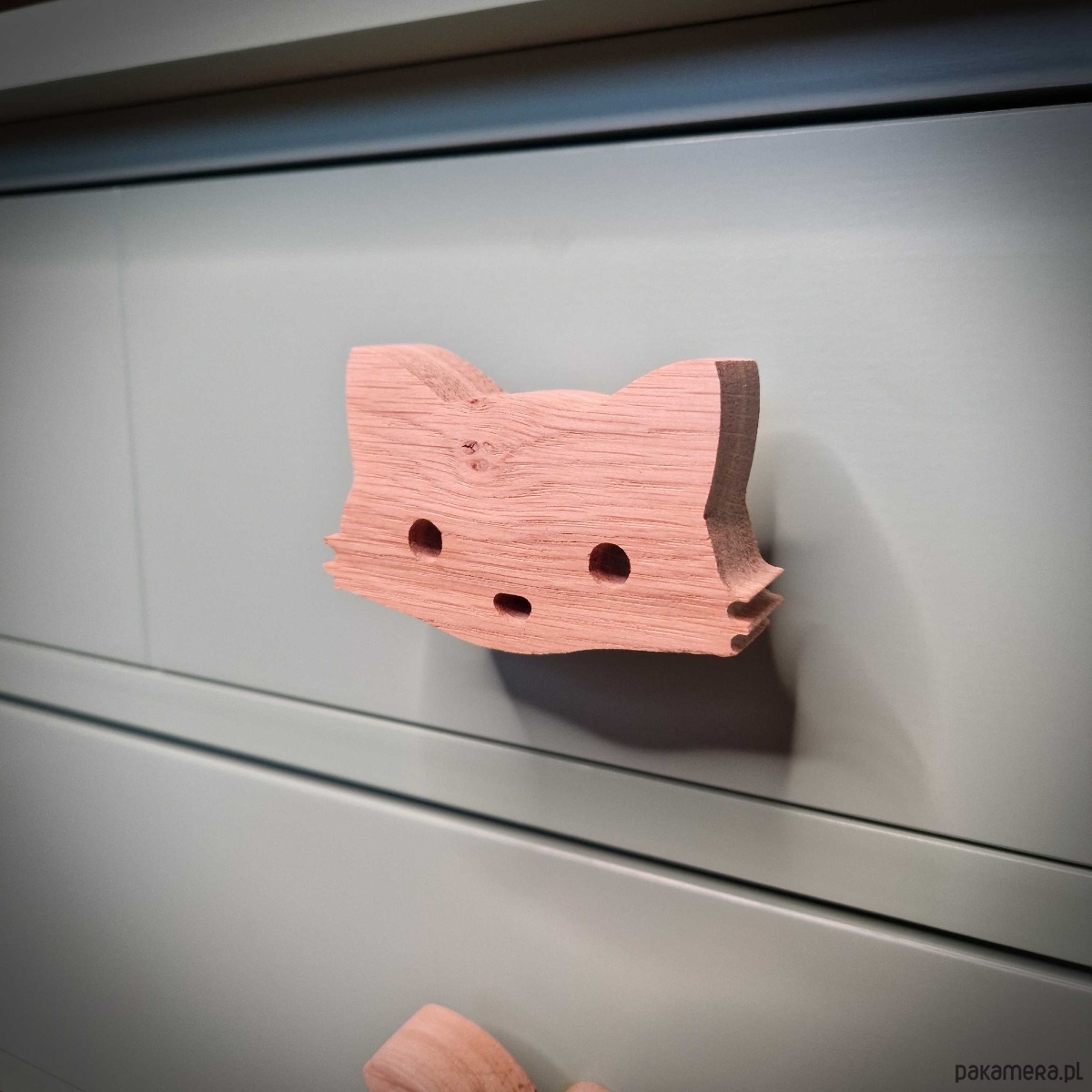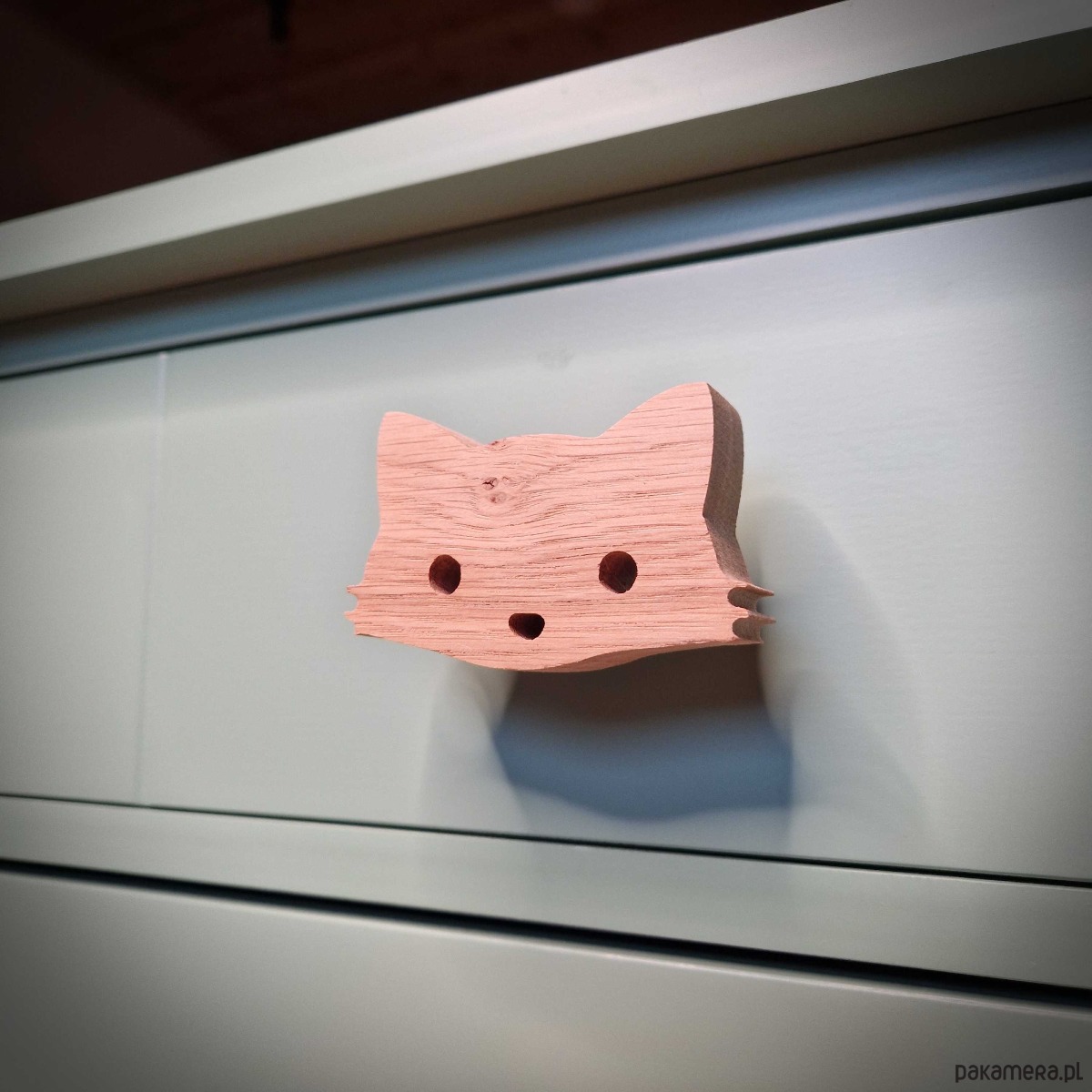 Drobny, ale wyrazisty detal, który potrafi całkowicie odmienić wygląd mebla – z charakterem, ciepłem i odrobiną kociego uroku.