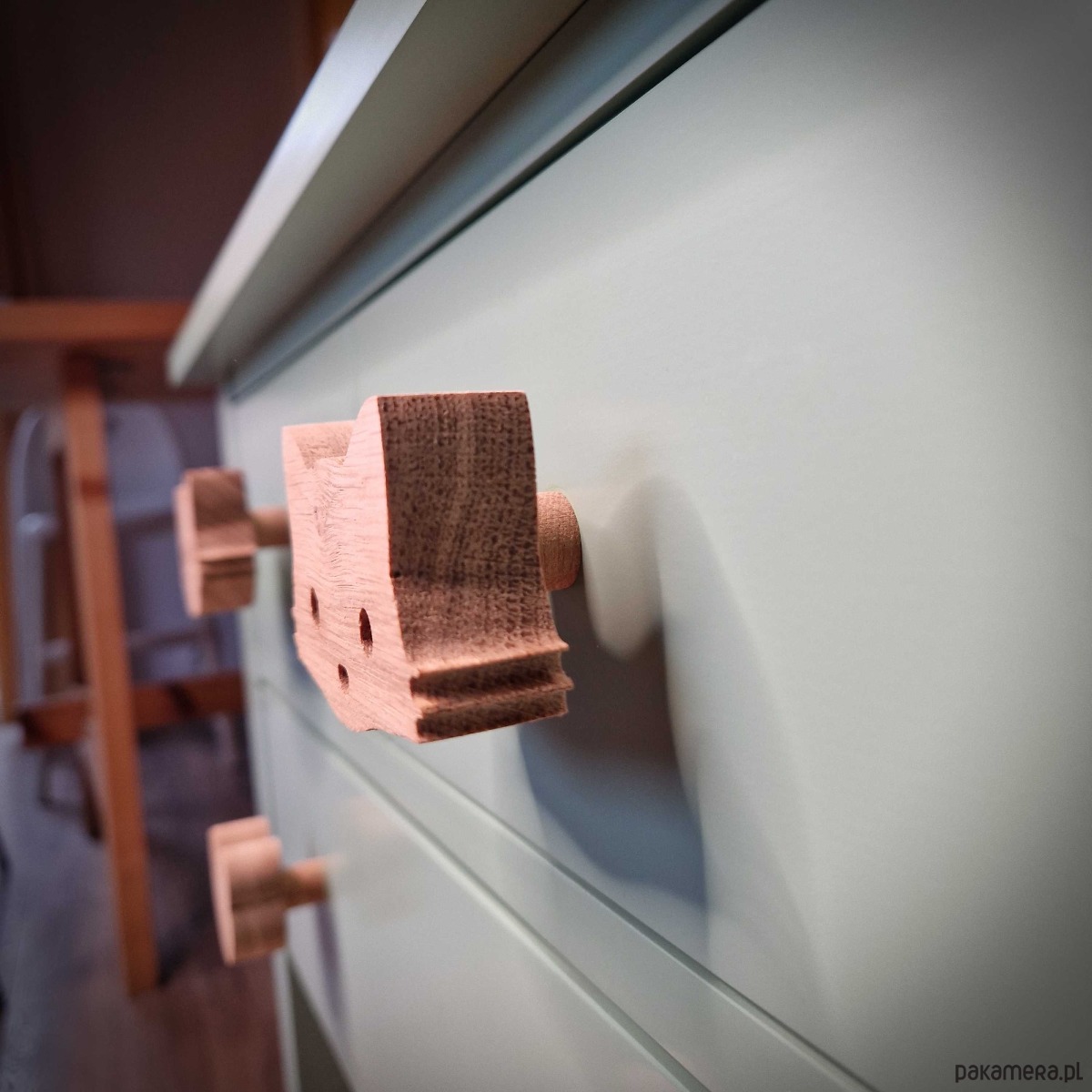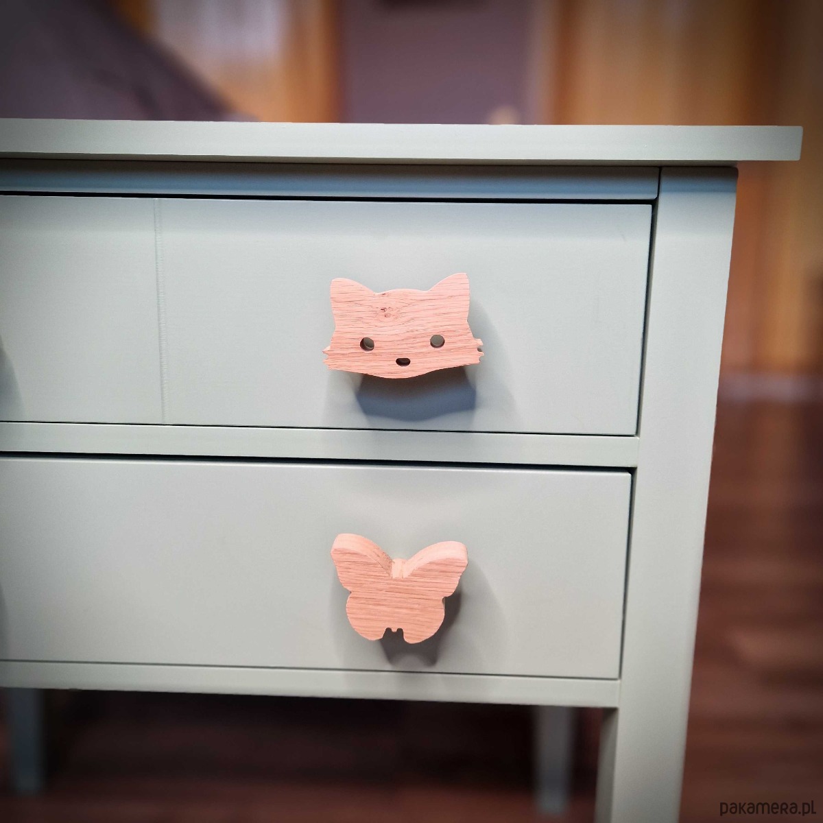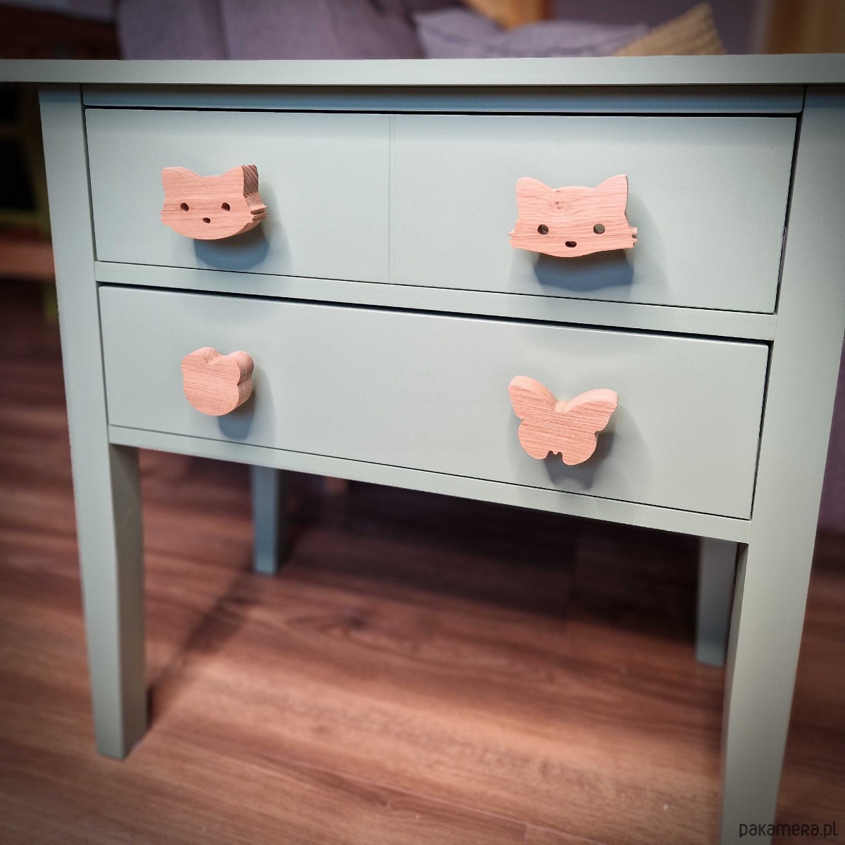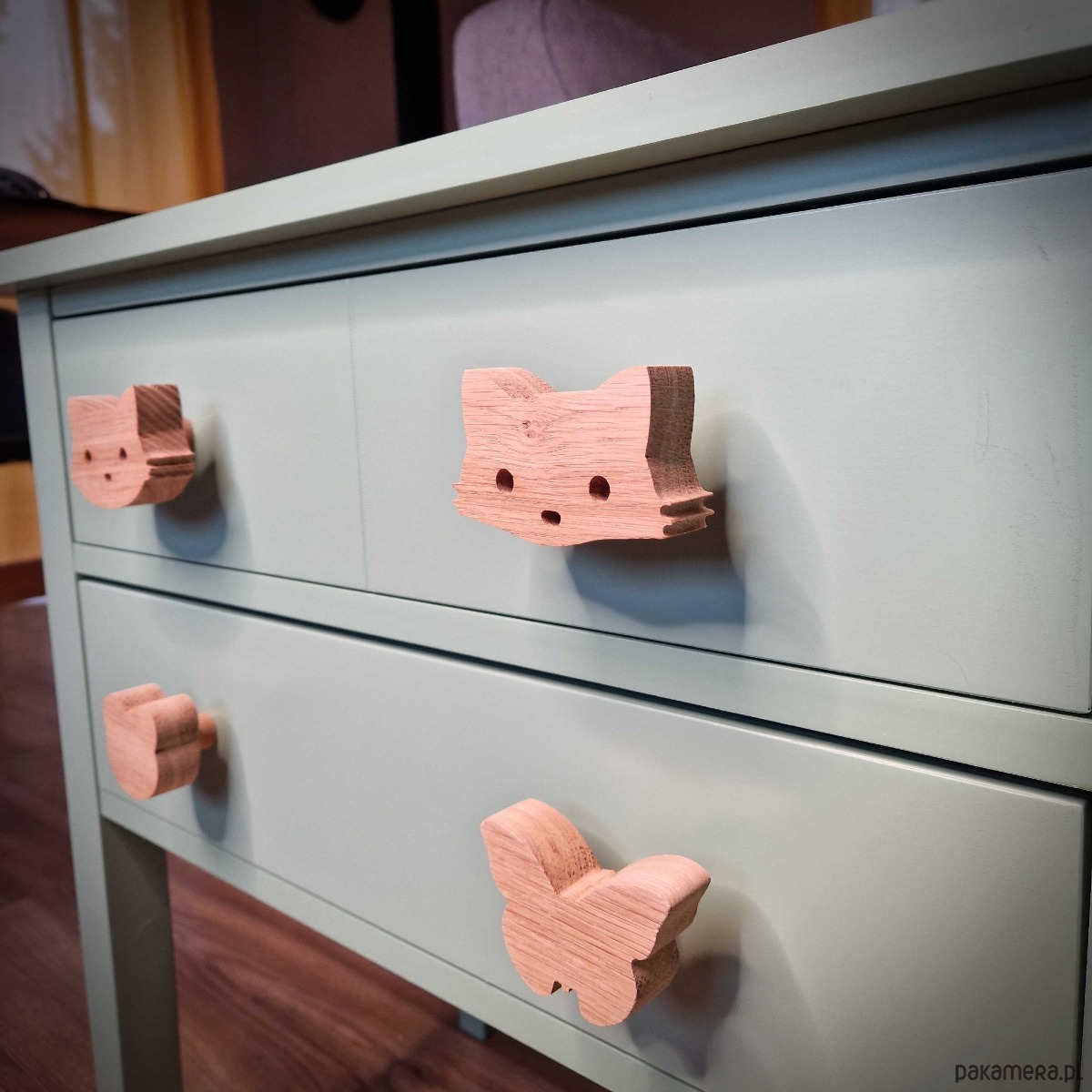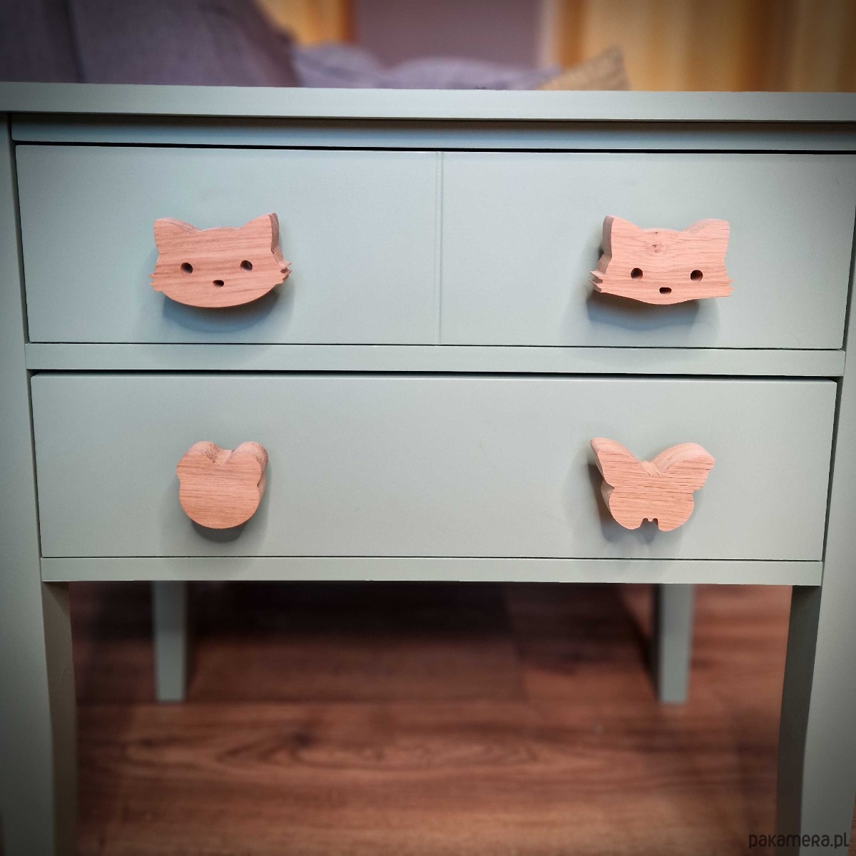 Drobny, ale wyrazisty detal, który potrafi całkowicie odmienić wygląd mebla – z charakterem, ciepłem i odrobiną kociego uroku.