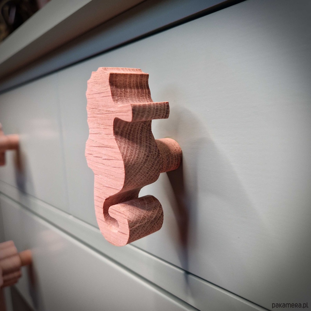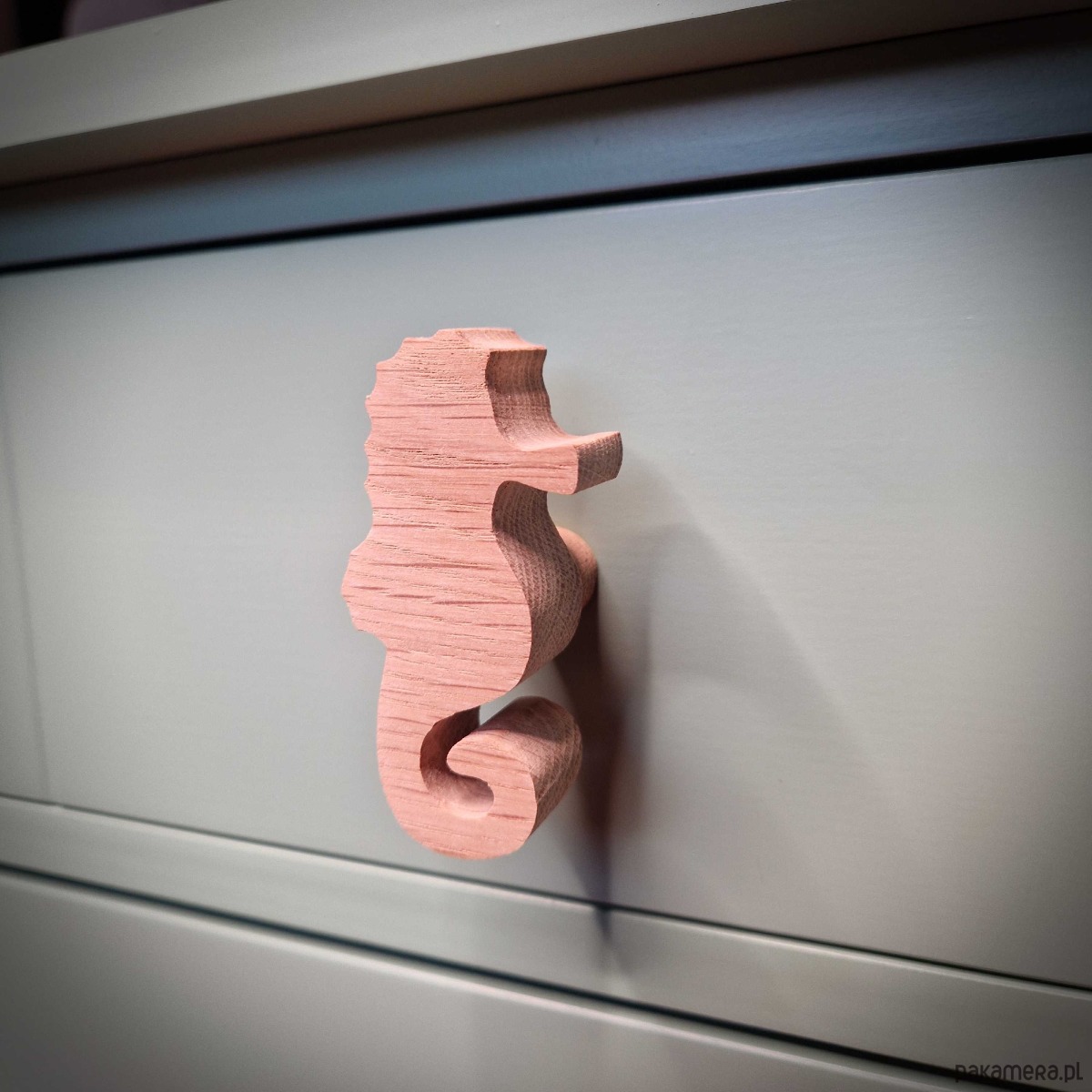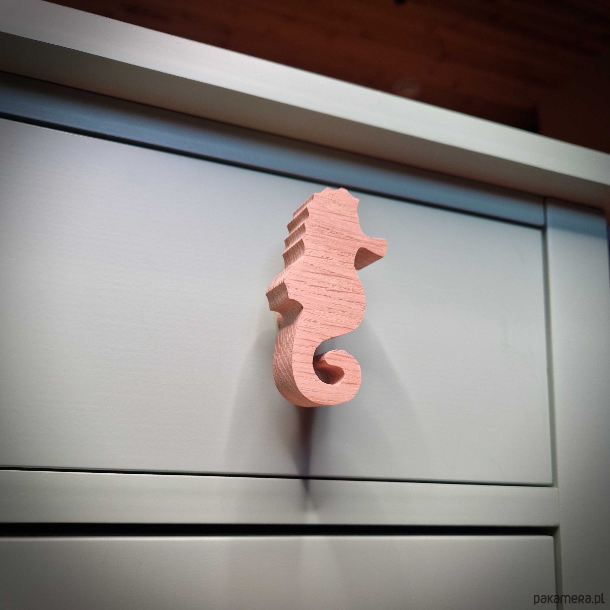 Drewniane gałki do mebli, z drewna, MORSKIE, konik morski