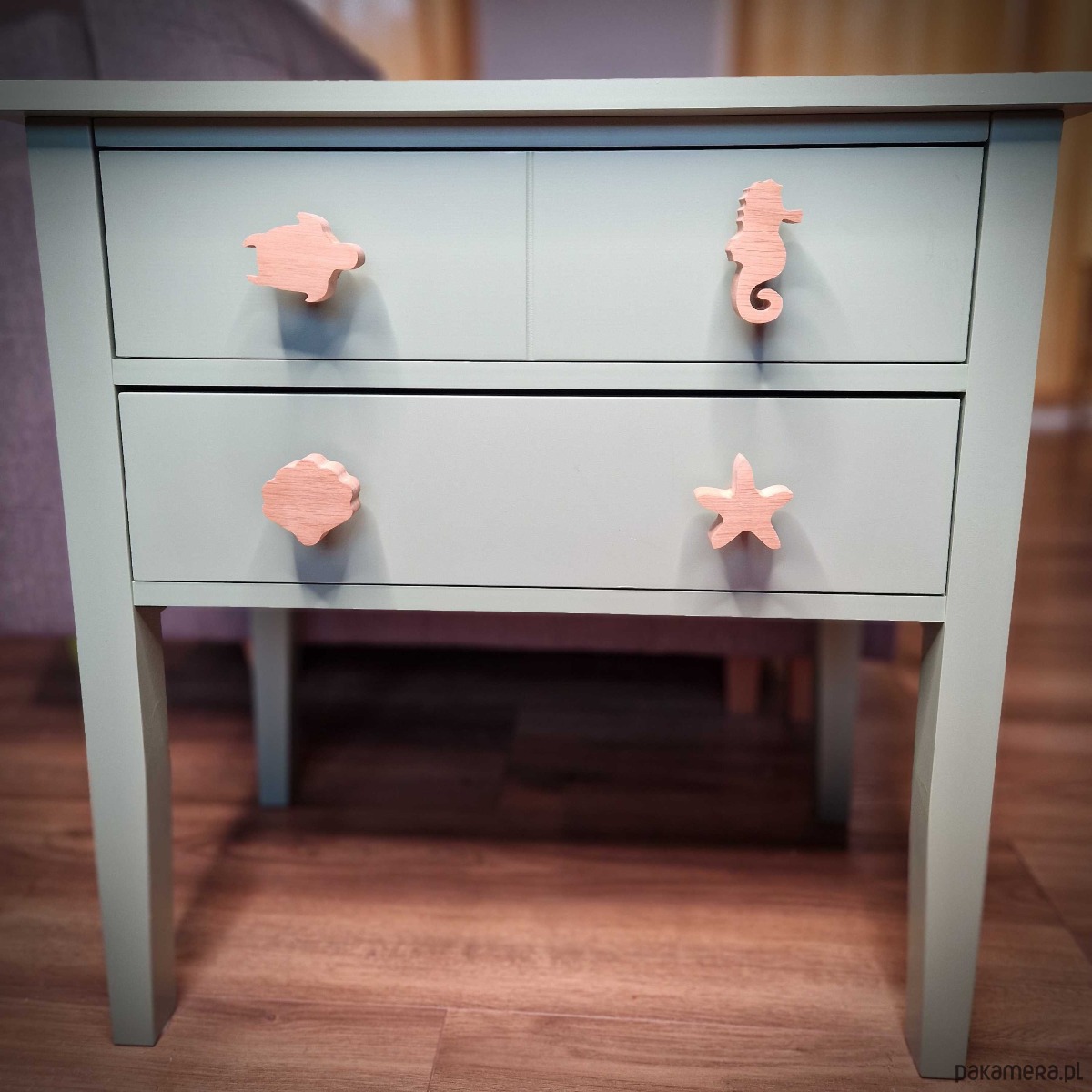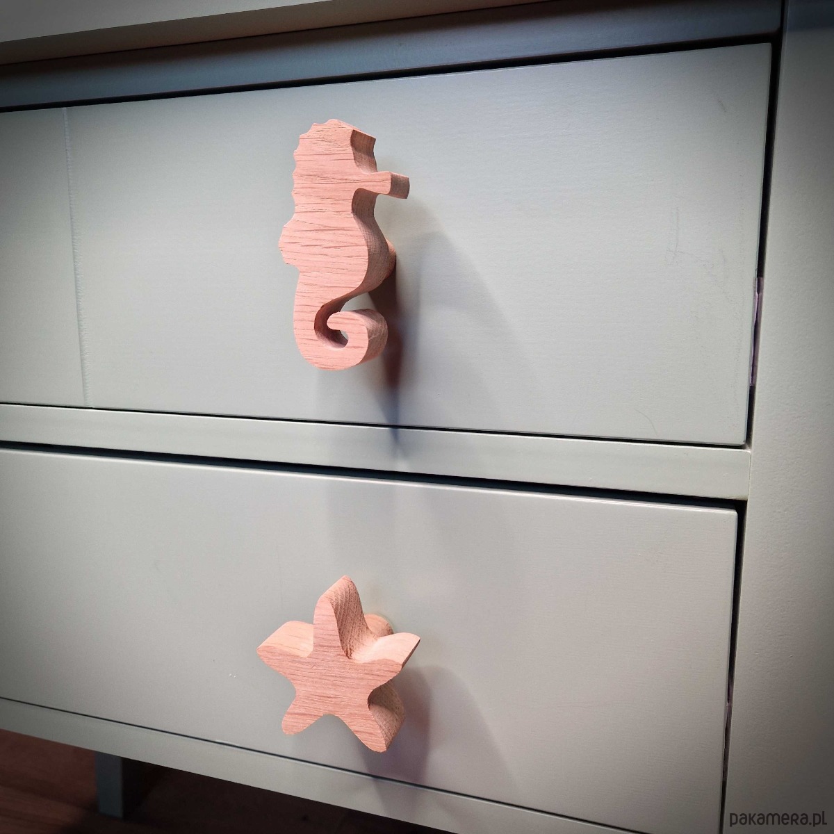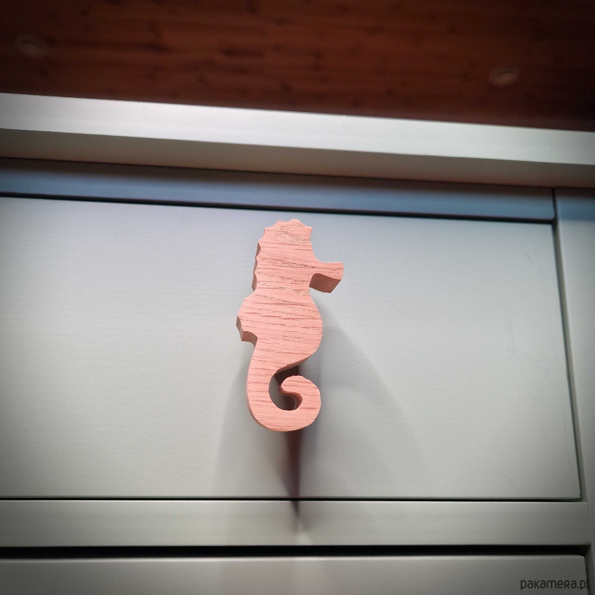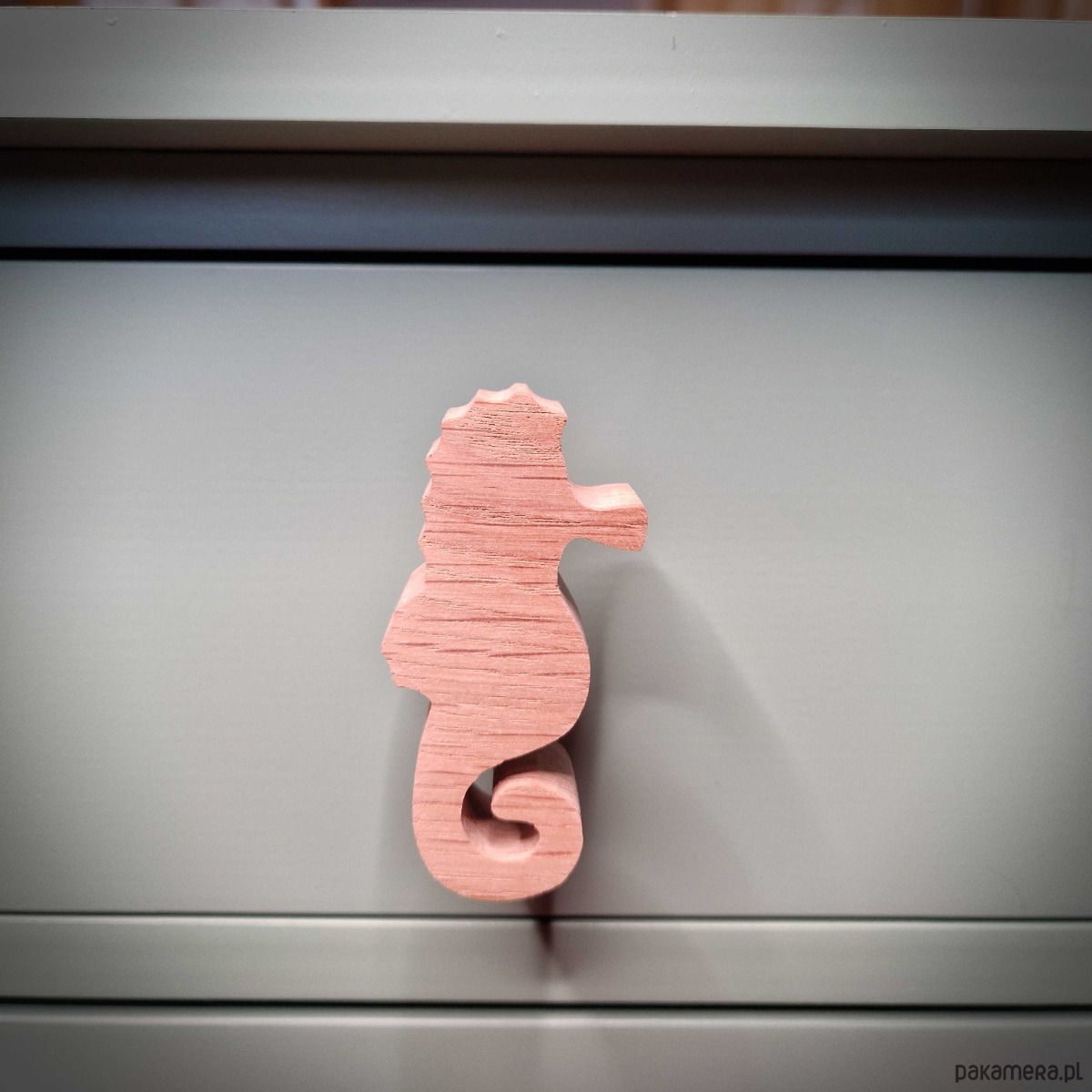 Drewniane gałki do mebli, z drewna, MORSKIE, konik morski